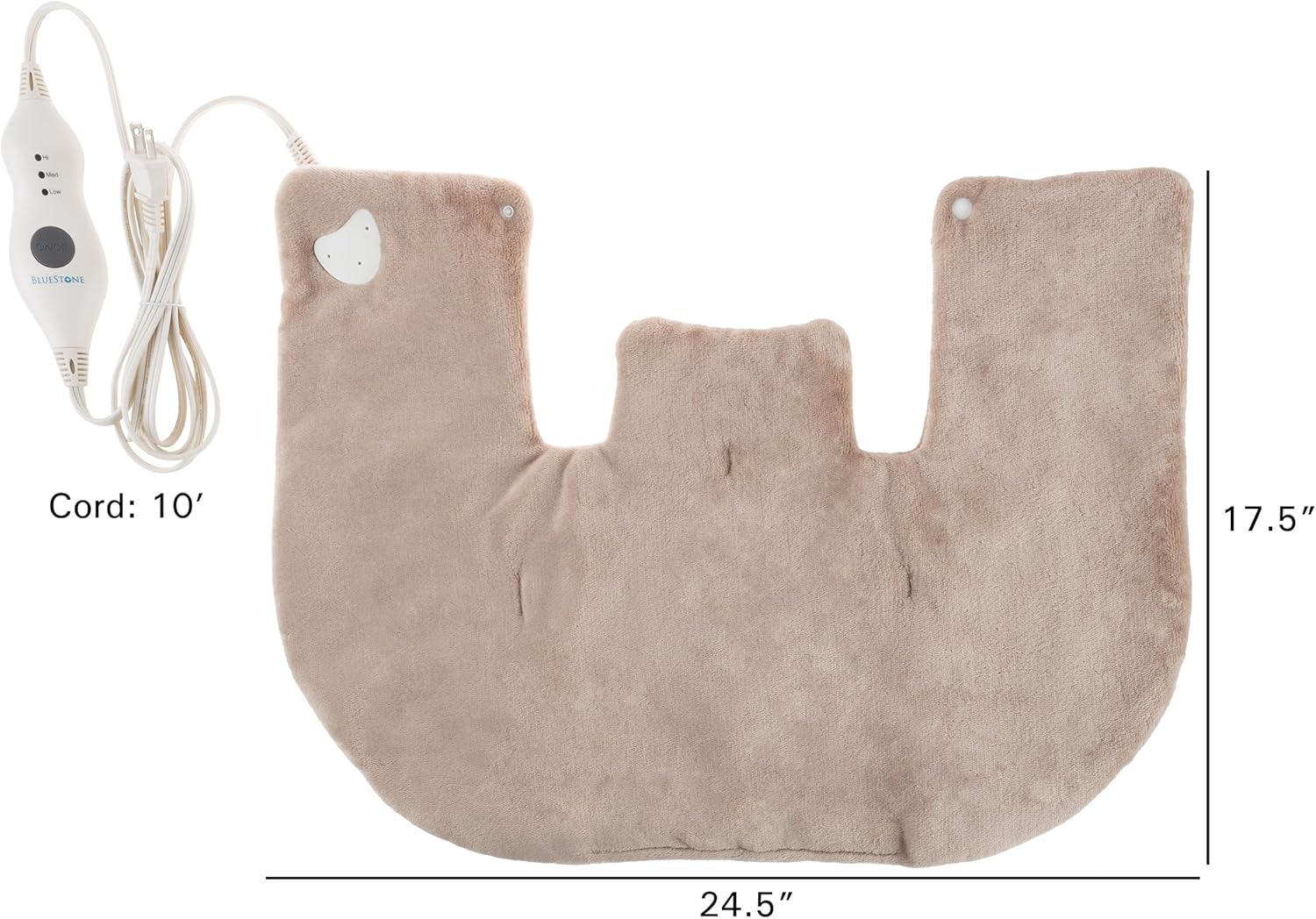 使用 bluestone 电动颈部和肩部取暖器保暖并缓解紧张。配备柔软的毛绒外壳、3 种不同加热设置的 LED 指示灯和将其固定到位的前扣,保暖包可根据您的舒适度进行调节并且易于佩戴。加热垫还配备 2 小时自动关机功能,因此您不必担心设备开启时间过长和过热。超长电源线可方便拆卸,因此您可以根据需要机洗加热包。这是在床上、沙发上,甚至在办公桌前工作时取暖的好方法。使用这款舒适的保暖垫,缓解肌肉酸痛和寒冷的房子或冬天的寒冷!注意:清洗后让加热垫完全干燥。潮湿时切勿插入电源。满意保证:bluestone 致力于为消费者提供我们所有产品的绝对最优惠价格和价值,我们通过严格的质量控制流程来确保这一点。注意:这是 bluestone 的独家产品,只有 bluestone 的电动颈部和肩部保暖器才保证是正品。重要提示:避免购买假冒产品和与未经授权的卖家交易。在我们每件产品的包装上寻找我们的标志。bluestone 是受美国商标法保护的注册商标,将受到大力捍卫。