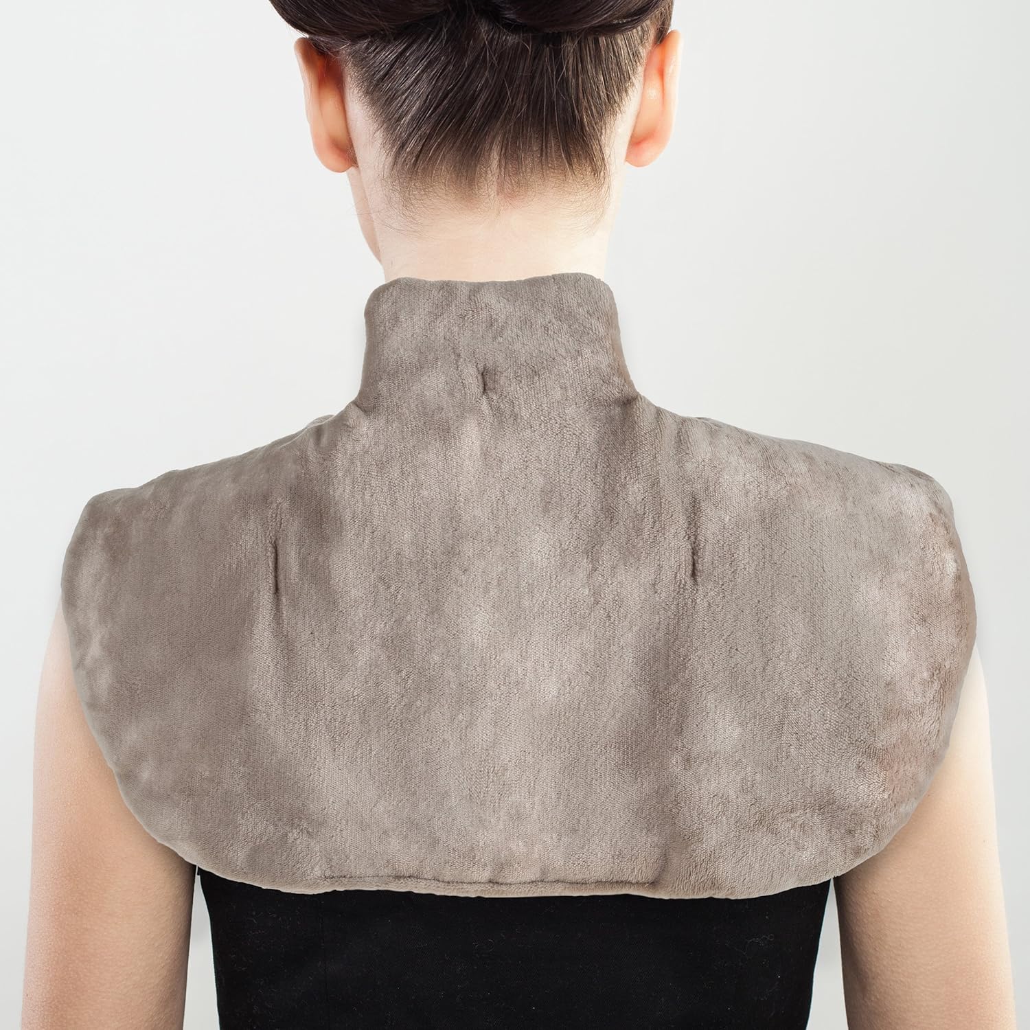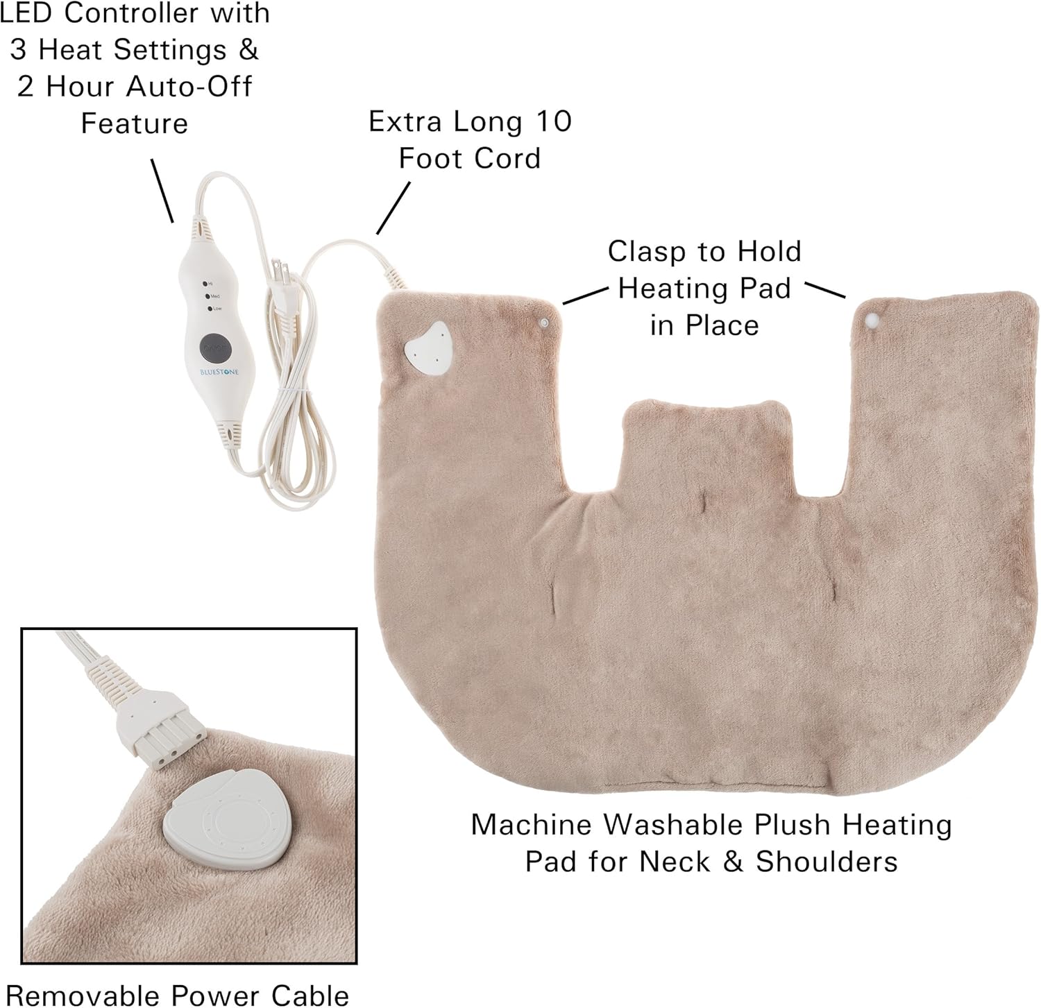 电动颈部/肩部保暖器 - 加热垫,带 3 种设置、自动关闭、前扣和长可拆卸线 - Bluestone 柔软毛绒加热包(棕褐色)