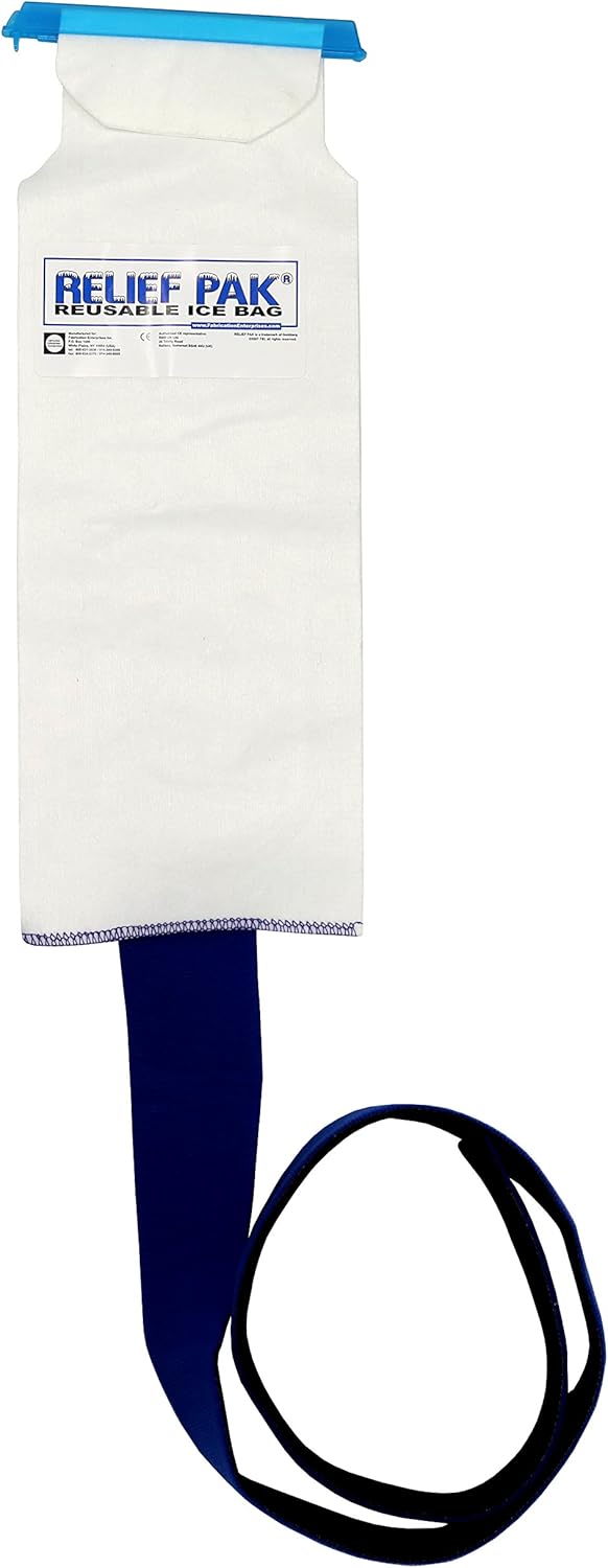 Relief Pak 隔热冰袋采用多层结构,有效防止水分接触皮肤。每个冰袋均配有方便填充的颈部开口和柔软舒适的外层面料。冰袋可重复填充,也可一次性使用,并配有泡沫带,用于将冰袋固定在治疗区域。