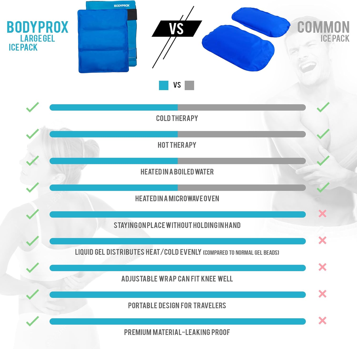 一个便捷的冰袋即可享受热敷和冰敷!Bodyprox 大号冰袋专为覆盖您最大的肌肉群而设计,可即时缓解过度劳累或受伤的肌肉。加热冰袋可缓解慢性疼痛,冷冻冰袋可缓解突发性损伤和肿胀。冰袋配有两条带魔术贴的松紧带,可贴合腿部/背部/肩部/手臂等多个较大的身体部位。将其绑在患处,即可开始您的一天!采用防漏、吸湿排汗、透气的尼龙外壳,确保您在使用过程中倍感舒适。建议每次冷热疗法时间限制在 15-20 分钟以内。冷热疗法用于控制受伤后的疼痛和炎症(冷敷),以及放松和舒缓因慢性疼痛而紧张的肌肉(热敷)。凝胶质地柔软,易于加热或冷却,贴合您的身体,从而达到最佳缓解效果。Bodyprox 大号冰袋采用优质凝胶,比传统冰袋保温或保冷时间更长。冰袋约……尺寸为 11 英寸 x 14 英寸,带子采用松紧设计,方便通用。制造商:Bodyprox。营业地点:Magway Trading Inc. 610 Alden Road, Suite 206, Markham, ON, L3R 9Z1, Canada。制造商参考号:BP-ICE-PACK-L001。包装尺寸:29.3 x 17.6 x 5.1 厘米;1.2 公斤。ASIN:B076YP4TWR。畅销商品排名:健康与个护类商品排名第 19,008 位(查看健康与个护类商品前 100 名)冷热敷袋类商品排名第 202 位。已停产:否。首次上市日期:2018 年 11 月 29 日。原产国:中国。顾客评价:4.3 星(满分 5 星),846 条评价。