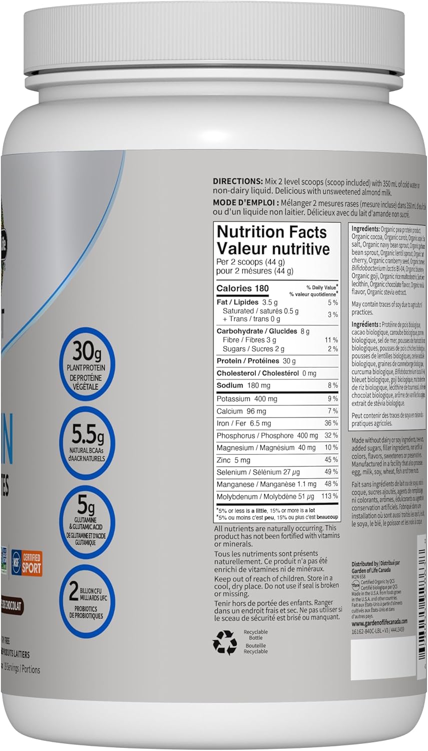 Garden of Life Sport 有机植物蛋白粉,巧克力味,840克,采用豌豆蛋白配方,帮助您的身体更快恢复,构建和修复肌肉,促进新陈代谢,同时还含有 Truly Clean 多源植物成分。30克完整有机植物蛋白,包括美国有机豌豆蛋白,含支链氨基酸