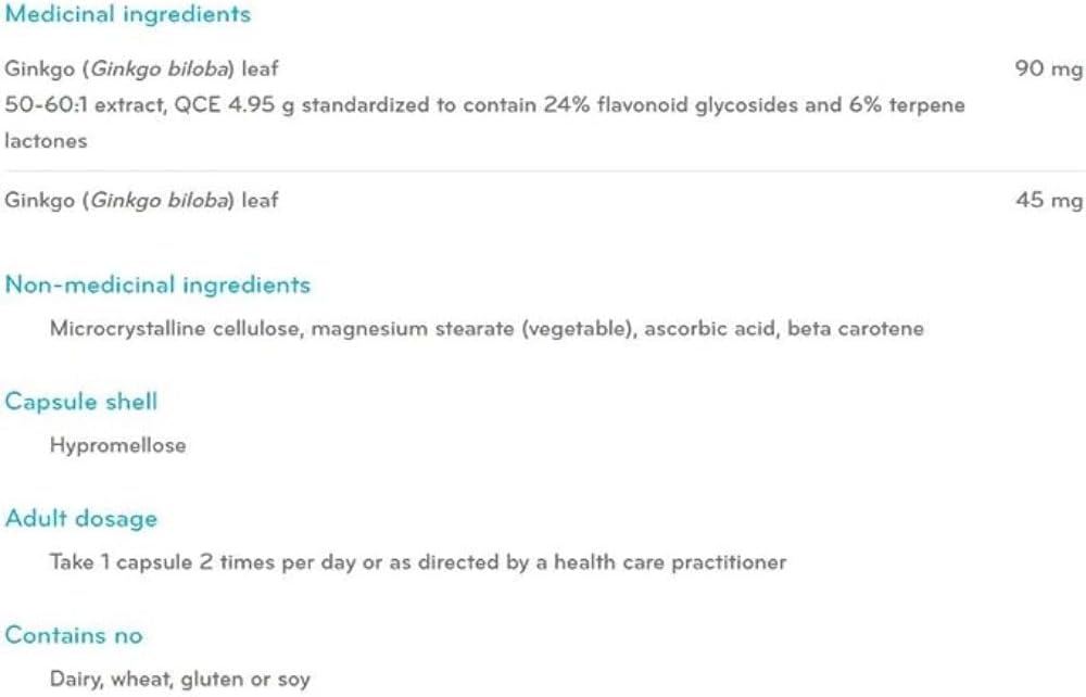 有助于增强记忆力,改善血液流动,标准化的叶子提取物,添加生草药粉