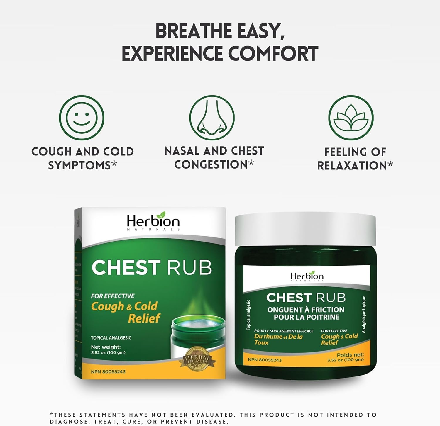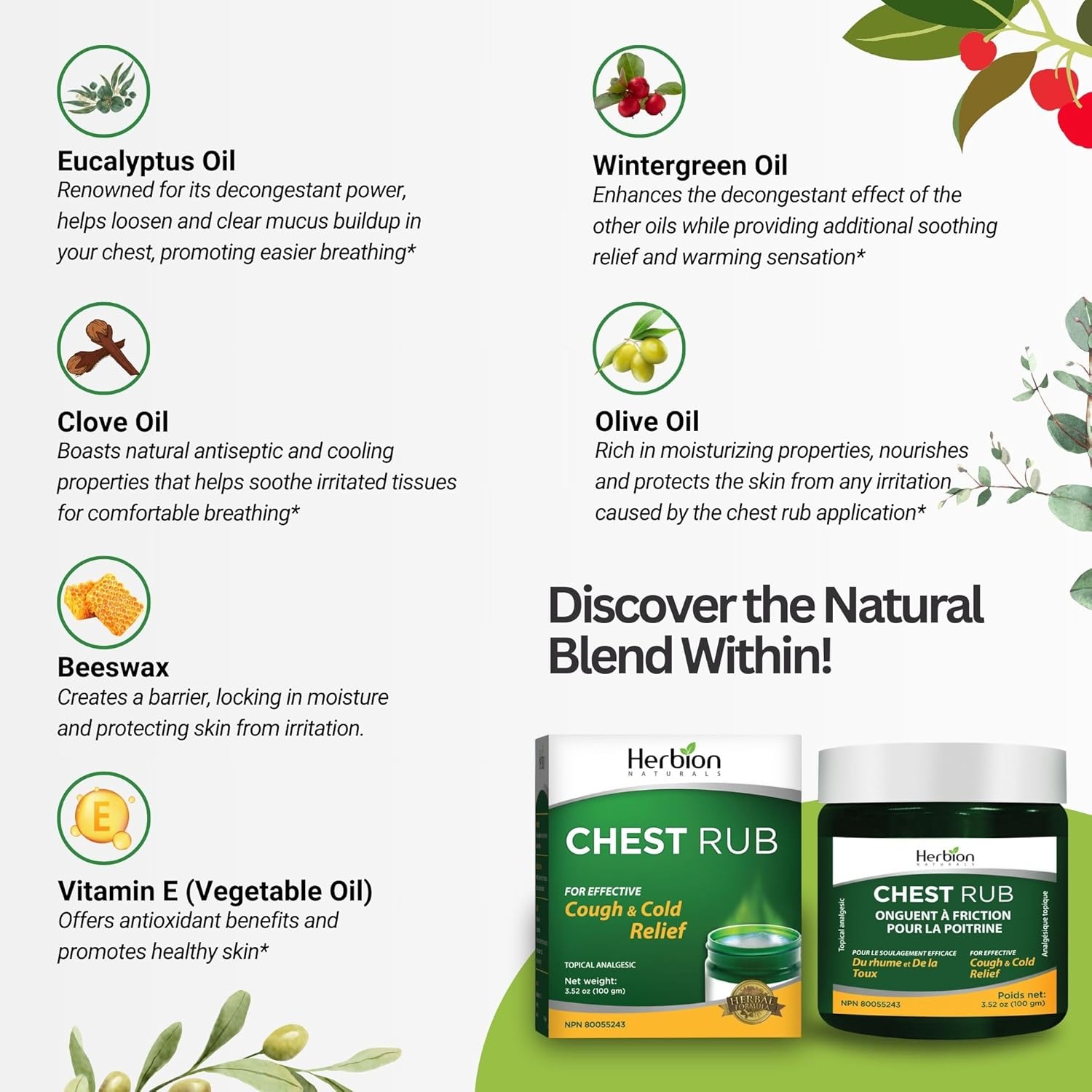 Herbion Naturals 胸部按摩膏,3.5 液体盎司 - 局部镇痛剂;缓解咳嗽、鼻塞和胸闷;舒缓拉伤、扭伤和关节炎引起的疼痛和酸痛
