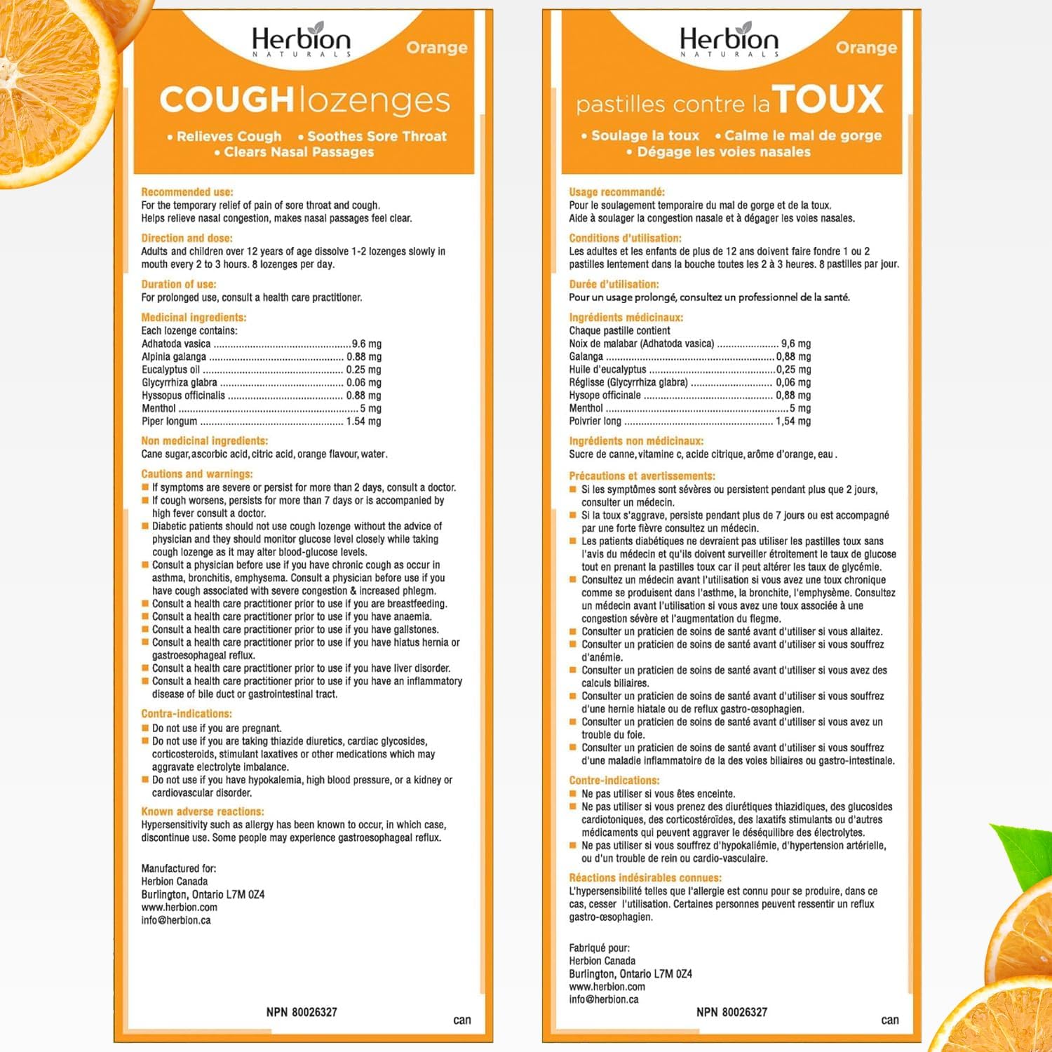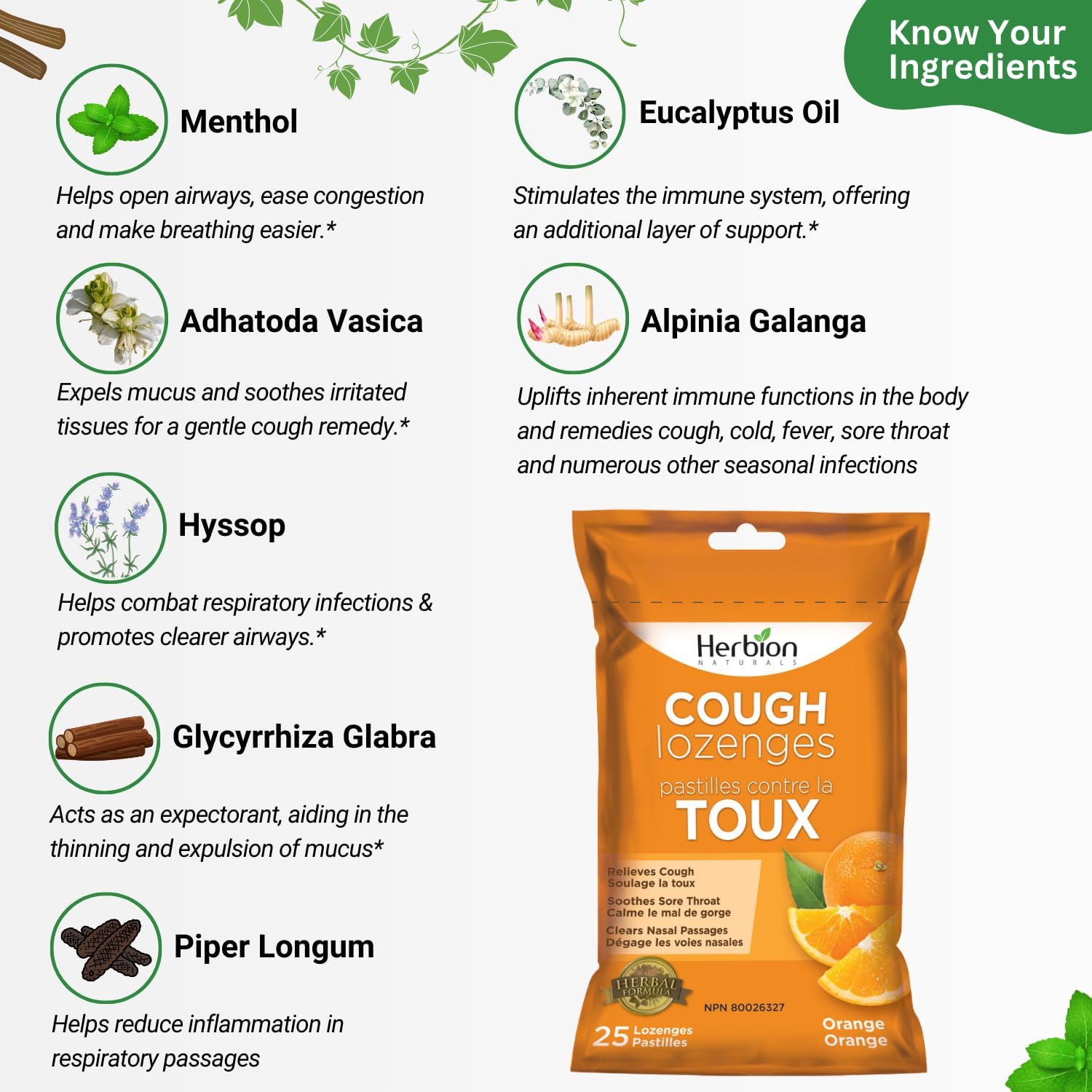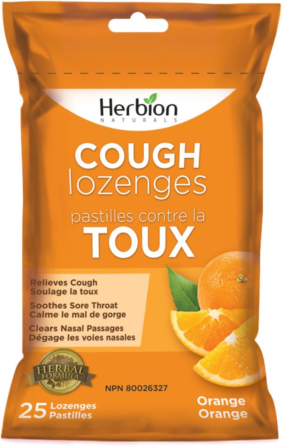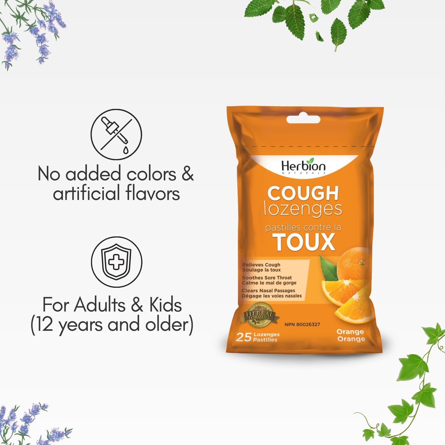 Herbion Naturals 天然橙味止咳糖,25 粒 - 缓解咳嗽、清除鼻塞、舒缓咽喉痛;适用于成人和 12 岁及以上儿童