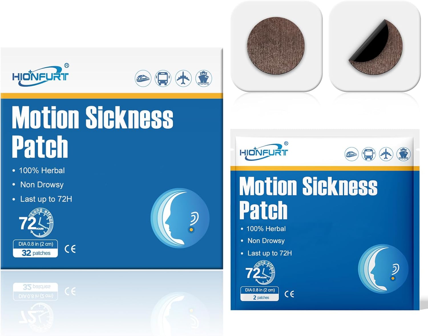 Hionfurt 32 片晕船贴,适用于游轮、汽车、轮船、飞机和其他形式的运动,晕船贴不瞌睡且有效,持续 72 小时
