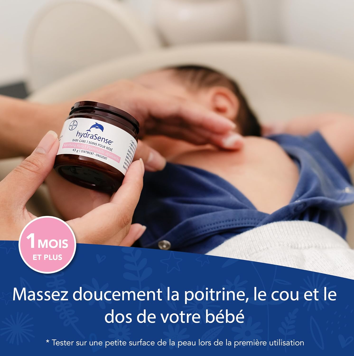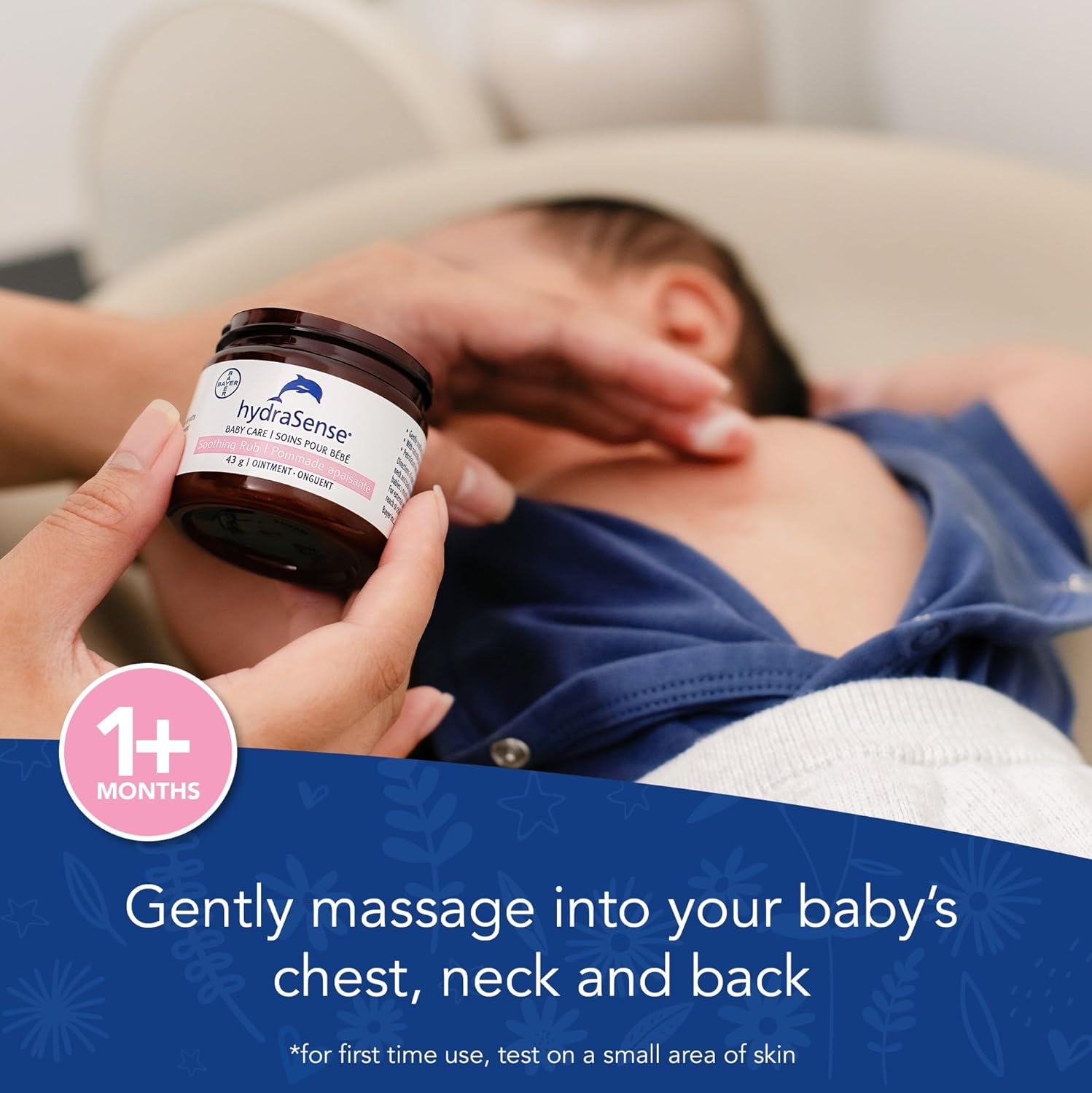 全新 hydraSense 婴儿舒缓按摩膏不含药物成分,不含凡士林。这款温和的胸部按摩膏采用薰衣草、洋甘菊和桉树的舒缓配方,有助于舒缓、安抚和镇静宝宝。配方温和,呵护宝宝娇嫩的肌肤,不含凡士林、薄荷醇、对羟基苯甲酸酯、邻苯二甲酸酯和氢化油。hydraSense 婴儿舒缓按摩膏经儿科医生测试,适用于 1 个月及以上的婴儿,质地温和,可作为您每天睡前护理的一部分使用。根据需要,用按摩膏轻轻按摩宝宝的胸部、颈部和背部,以舒缓、镇静和安抚宝宝。
