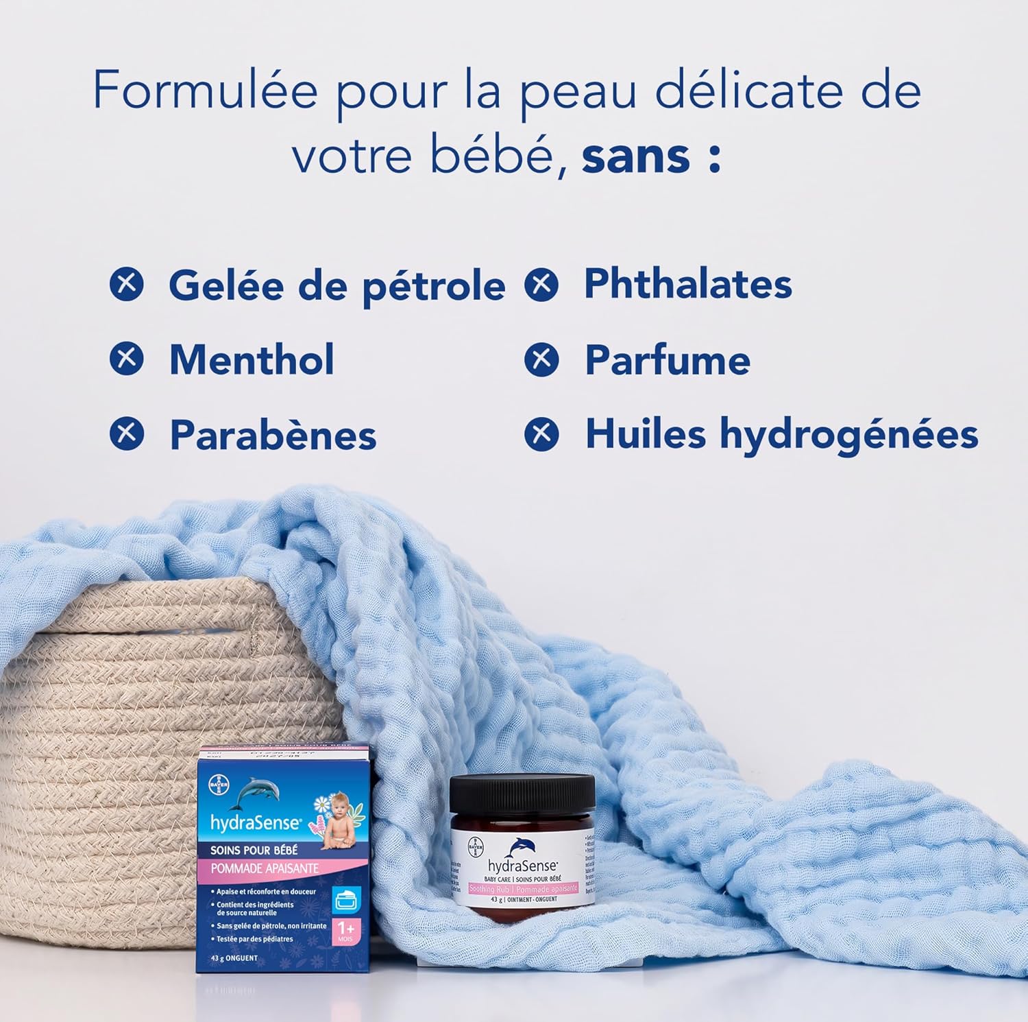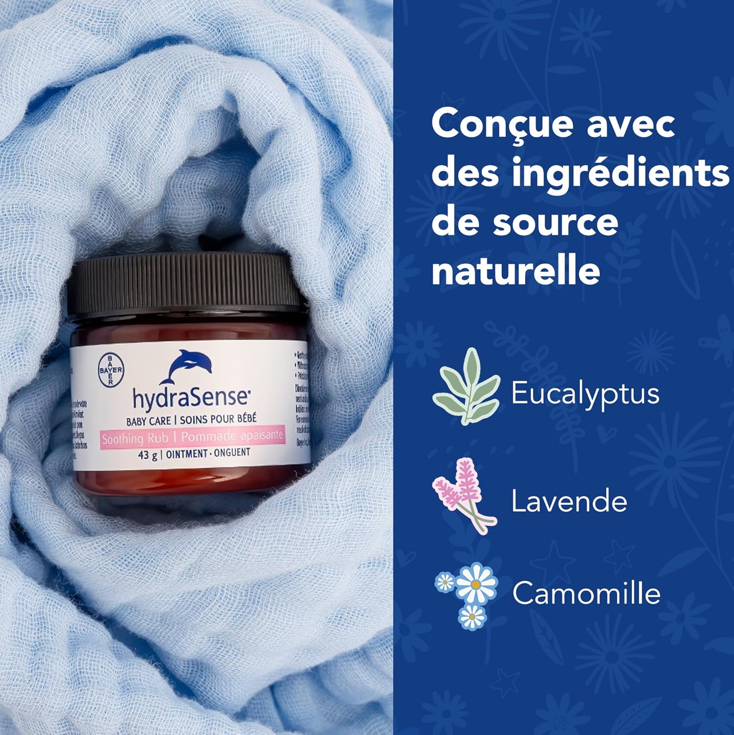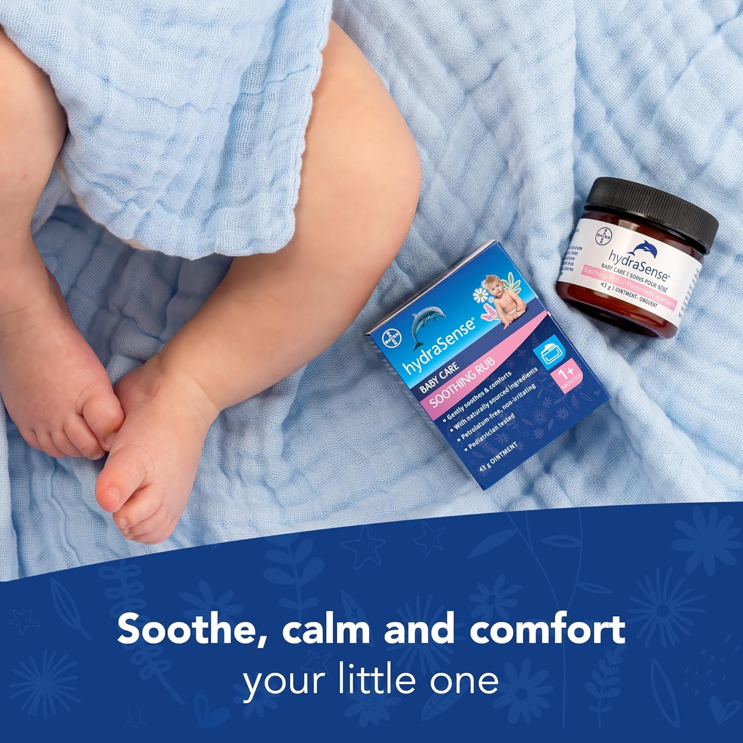 hydraSense 婴儿护理舒缓膏 – 温和舒缓,舒适呵护,不含凡士林,无刺激性,采用天然成分桉树、薰衣草和洋甘菊制成,经儿科医生测试。43克