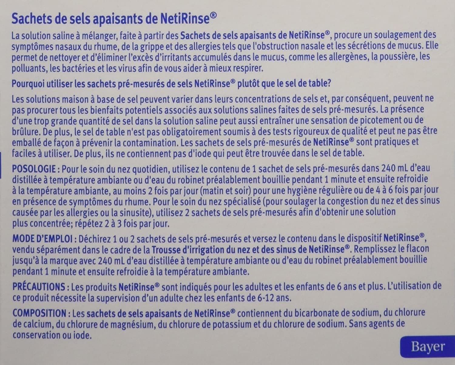 hydraSense NetiRinse 补充装盐包可有效缓解鼻塞和感冒症状。本产品与 hydraSense NetiRinse 配合使用,可清除鼻塞和分泌物,并有助于缓解鼻塞和相关的鼻窦压力。使用 1 包盐包进行日常鼻腔护理,或使用 2 包盐包进行特殊鼻腔护理。内含 60 个预先计量的 4 克盐包。本产品可与其他鼻窦冲洗器一起使用。为确保本产品适合您,请务必阅读并遵循标签上的说明。