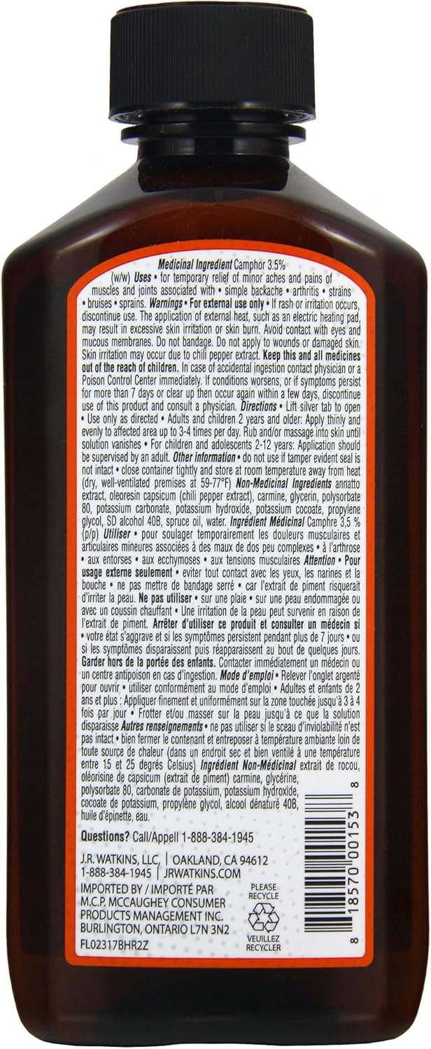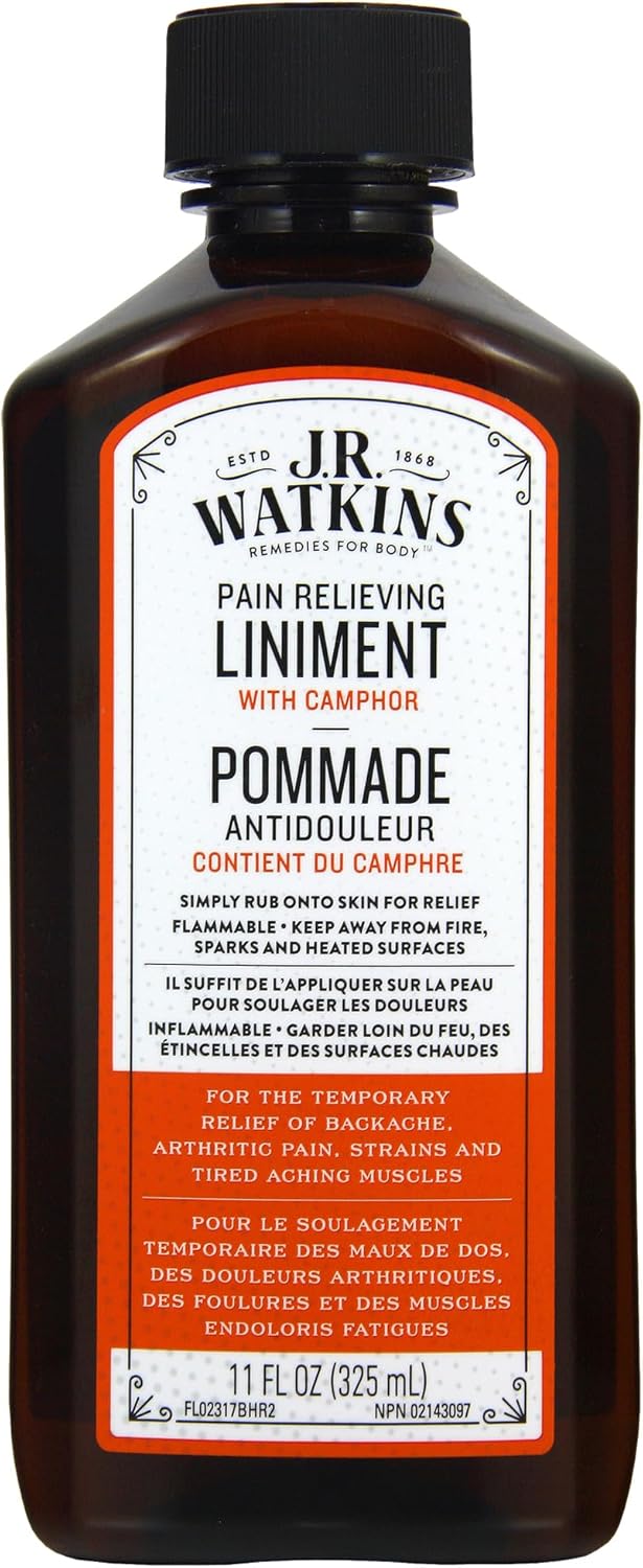 J.R Watkins 抗刺激搽剂可暂时缓解背痛、腰痛、拉伤、扭伤(肌腱和韧带疼痛)以及关节炎引起的肌肉和关节疼痛。采用云杉油制成。