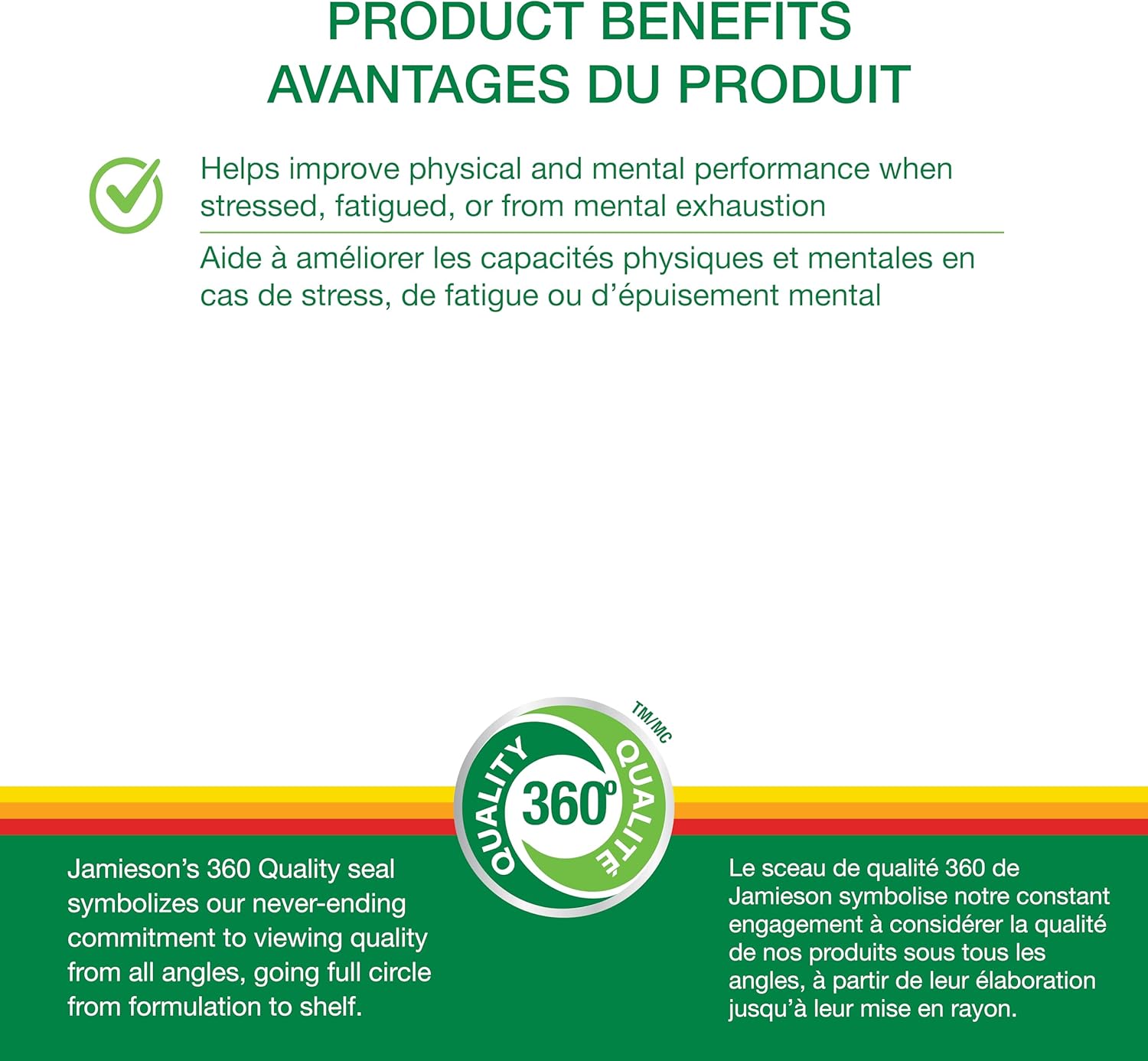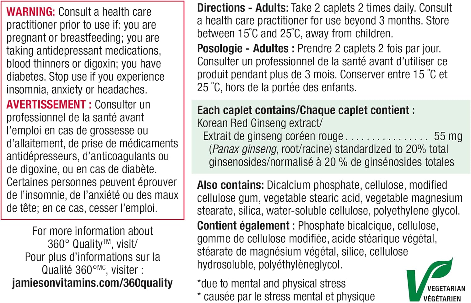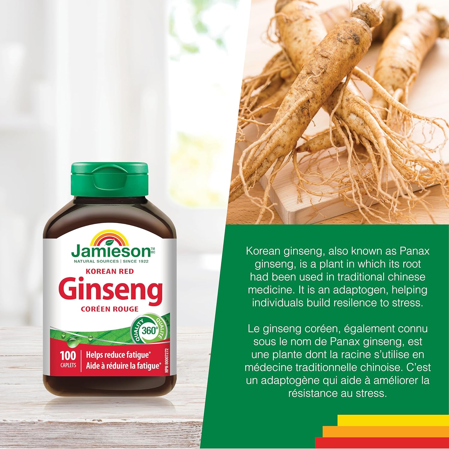 Jamieson 韩国红参,人参,有助于缓解压力,减轻疲劳,增强认知健康,提升体能。非转基因,无麸质,100 粒素食胶囊,加拿大制造