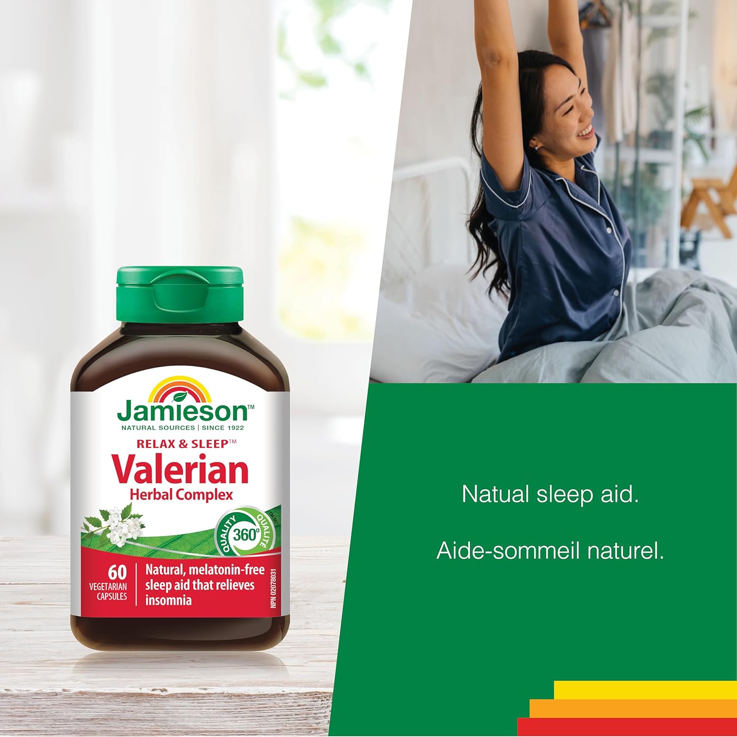 Jamieson 舒缓睡眠缬草草本复合物蕴含四种天然草本成分,有助于改善睡眠。这款安全无毒的缬草、啤酒花、西番莲和猫薄荷配方,有助于促进安稳睡眠,缓解焦虑。