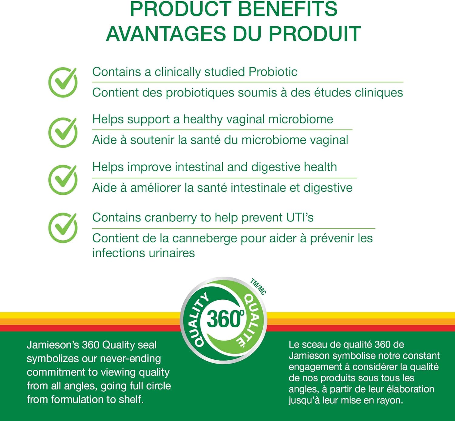 Jamieson 女性益生菌软糖采用经临床研究的益生菌菌株,有助于维持健康的阴道微生物群。富含益生菌、益生元和蔓越莓,美味滋养女性健康。