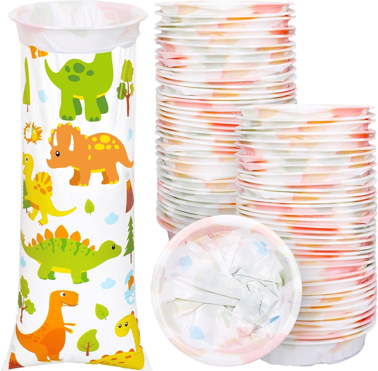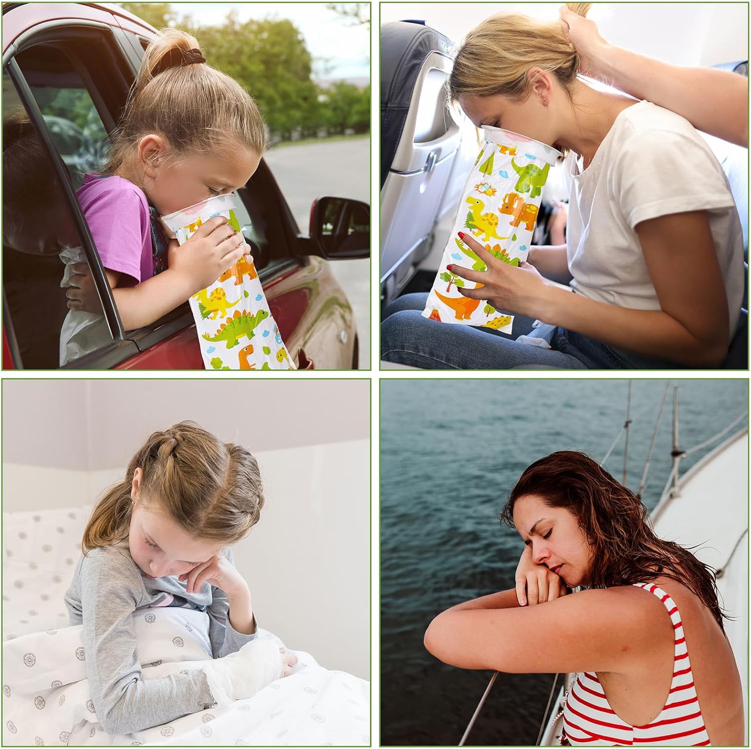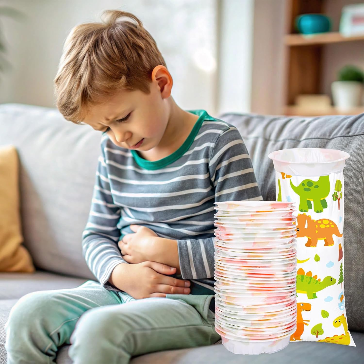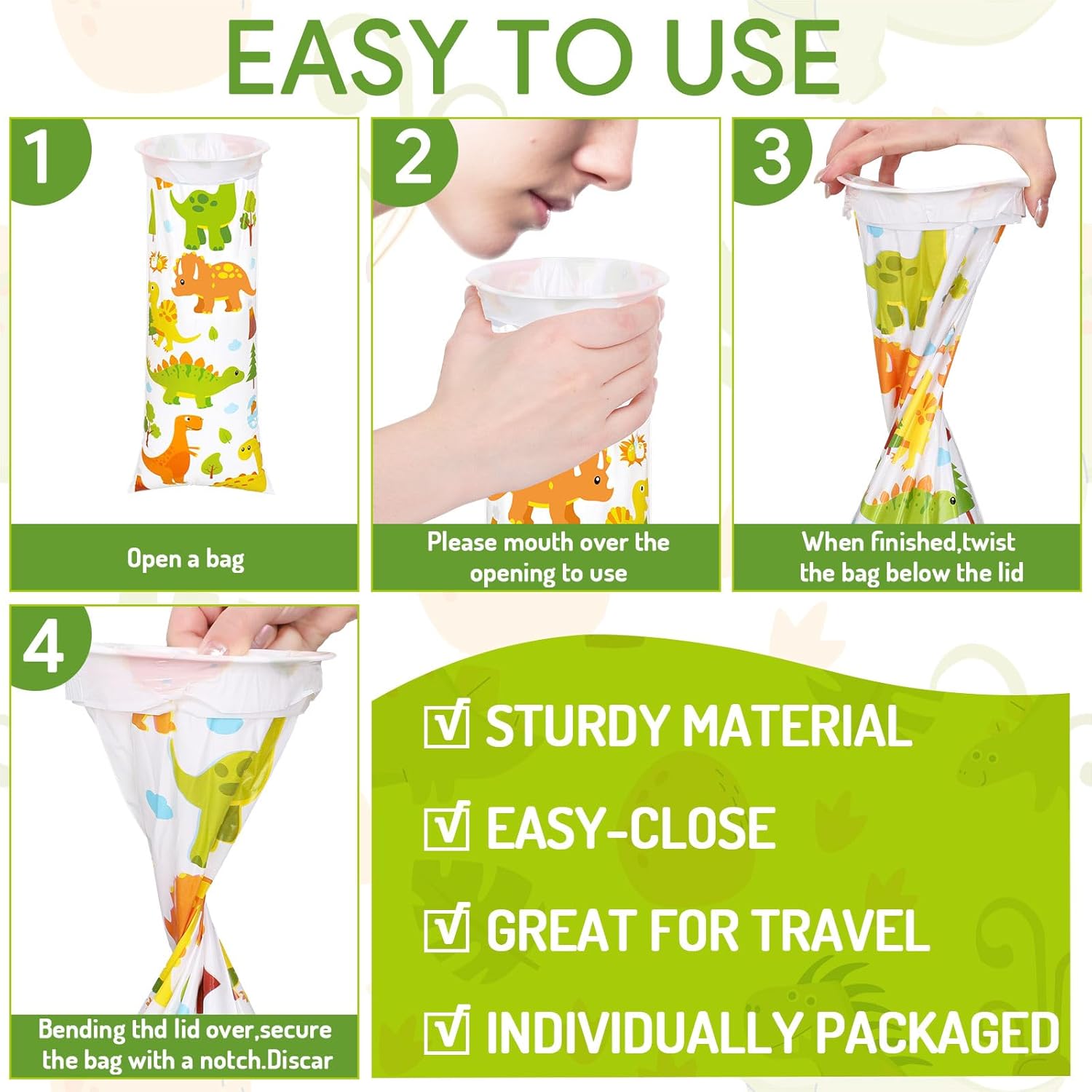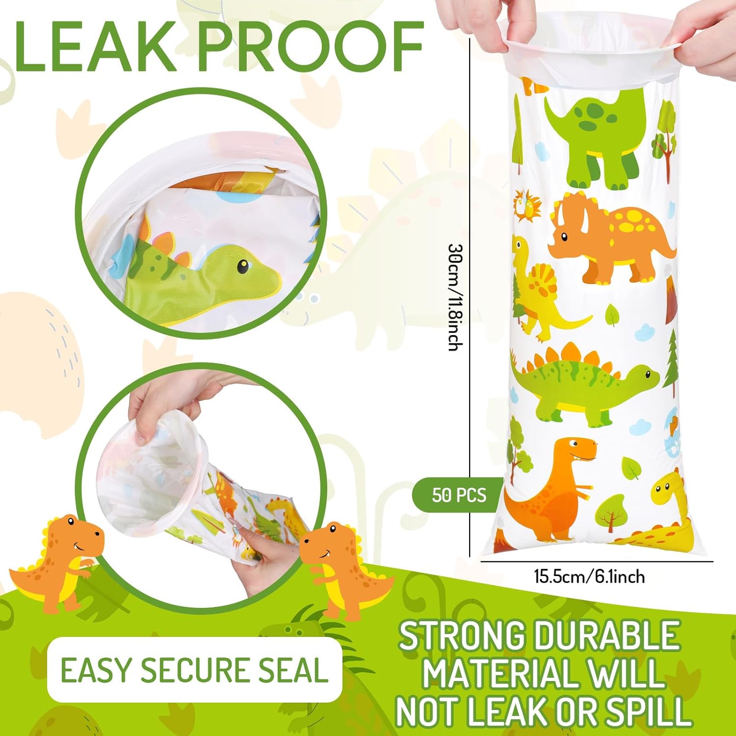 JarThenaAMCS 50个装儿童呕吐袋一次性恐龙呕吐袋防漏自封便携式呕吐袋适用于晕车晕船晕车旅行