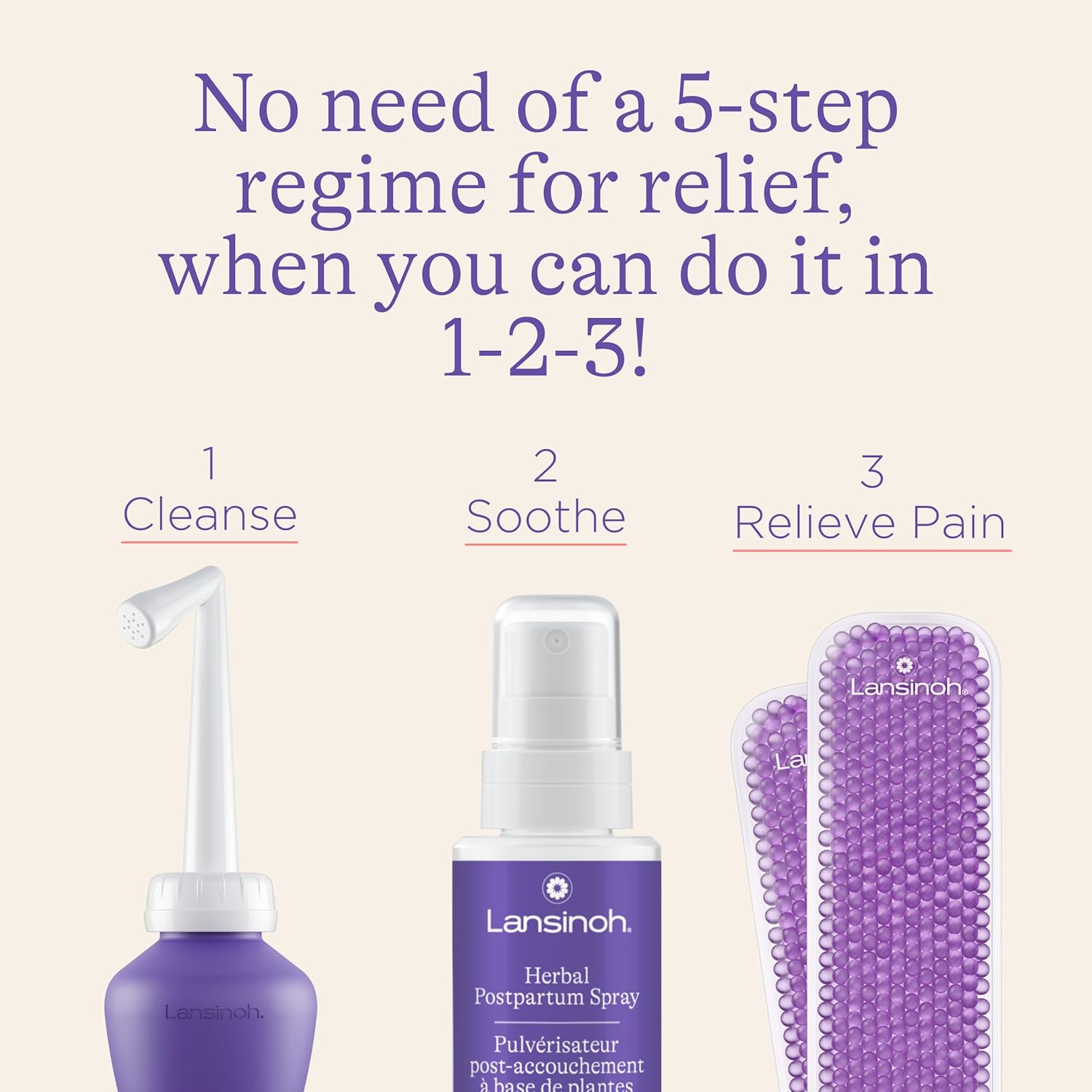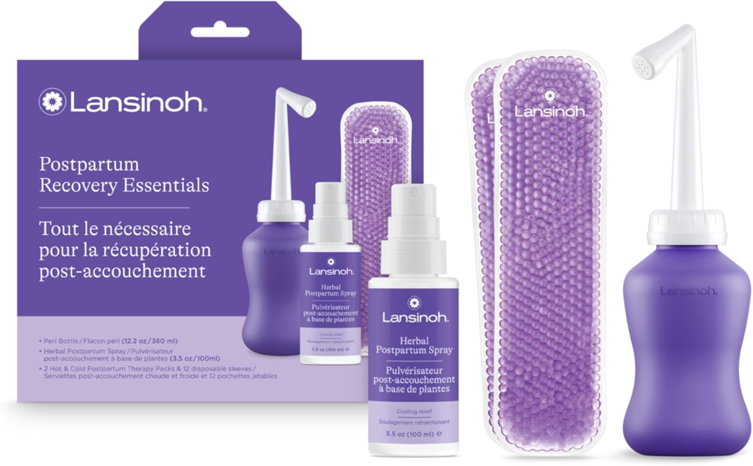 Lansinoh 产后必备套装,包含倒置会阴瓶、草药会阴喷雾、可重复使用的会阴冰袋和冰袋
