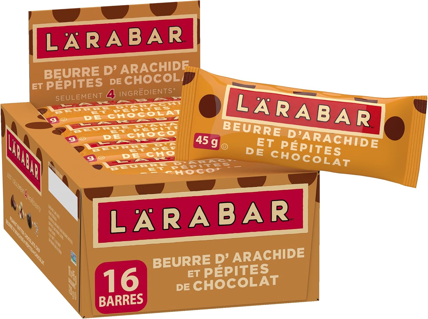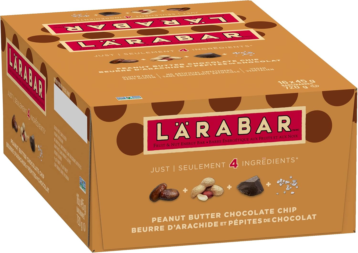 LÄRABAR 花生酱巧克力碎、水果坚果能量棒,16条装,无麸质,纯素,家庭装,零食棒