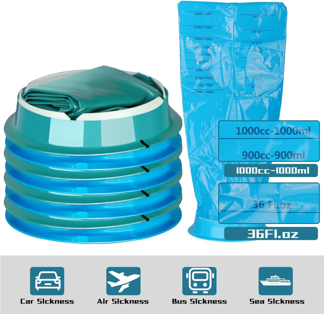 LINXIU 呕吐袋 一次性呕吐袋 1000ml 恶心呕吐袋 便携式呕吐袋 适用于旅行、汽车、晕车、孕妇、晨吐 16个装