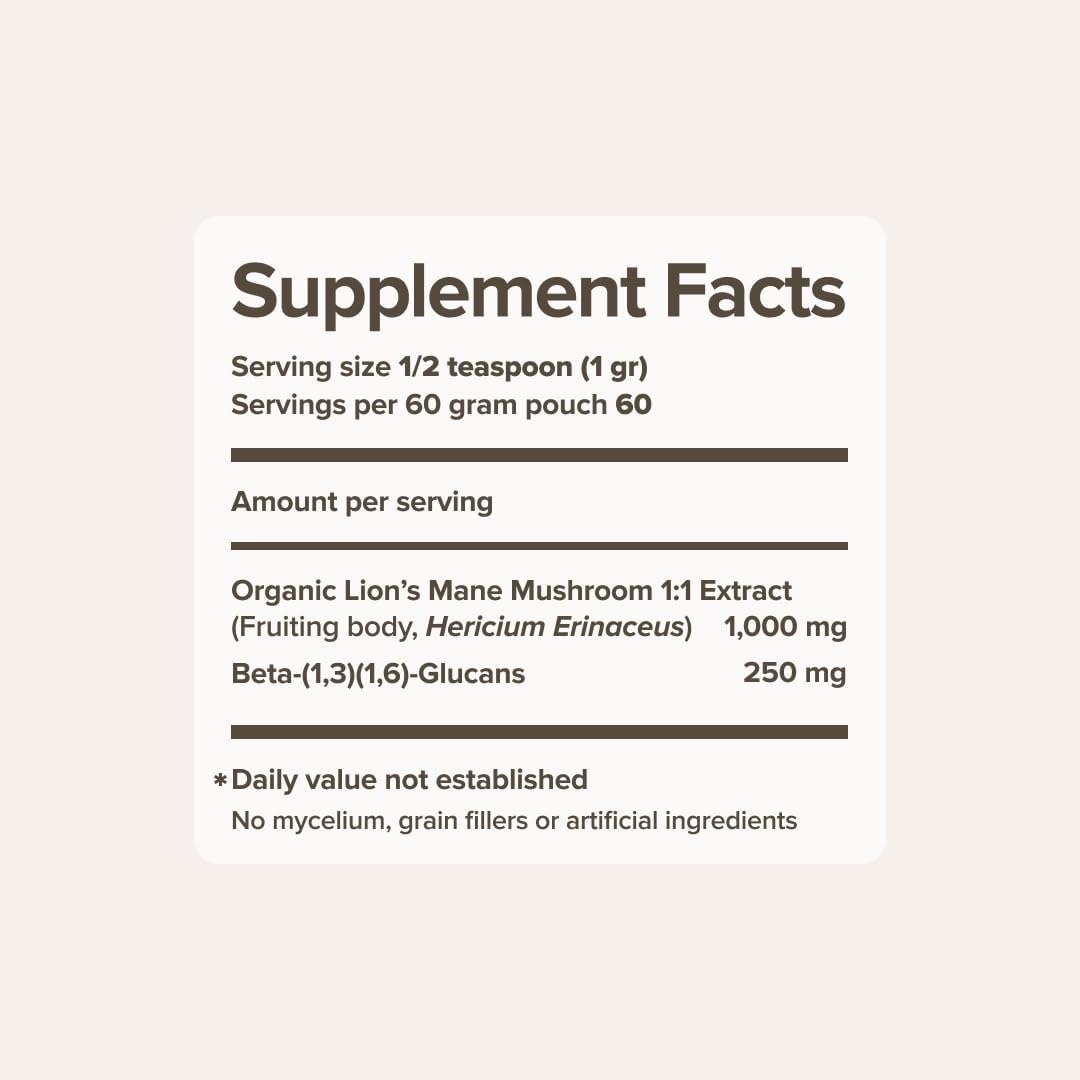 Bloomable 狮鬃菇提取物粉 – 100% 子实体,有机,热水提取物 – 60 克 – 有益大脑健康、记忆力和注意力 – 可添加到咖啡、茶、冰沙中(60 份)