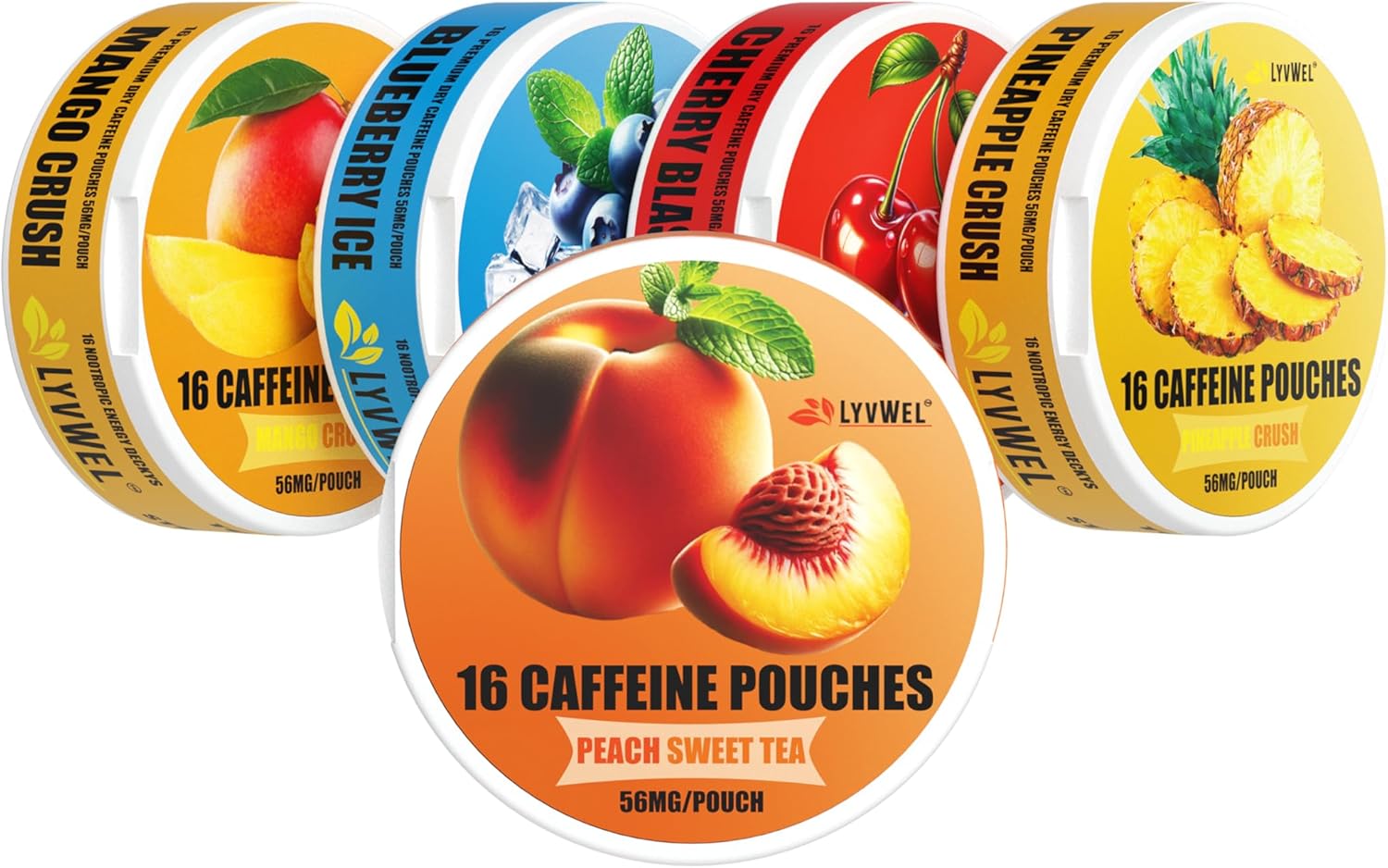 LYVWEL 5 包咖啡因浸剂 | 益智专注力和神经支持 | 天然咖啡因提升 | 每罐 16 包 | 每包含 56 毫克咖啡因 | 不含尼古丁,不含烟草 | 即时能量提升