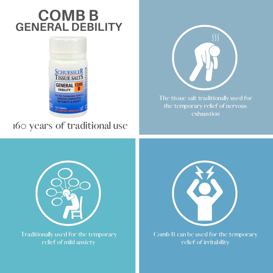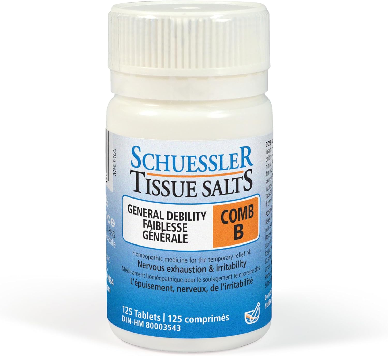 Martin & Pleasance - Schuessler 组织盐通用虚弱梳 B,125 片 - 传统上用于缓解神经衰弱、烦躁和轻度焦虑