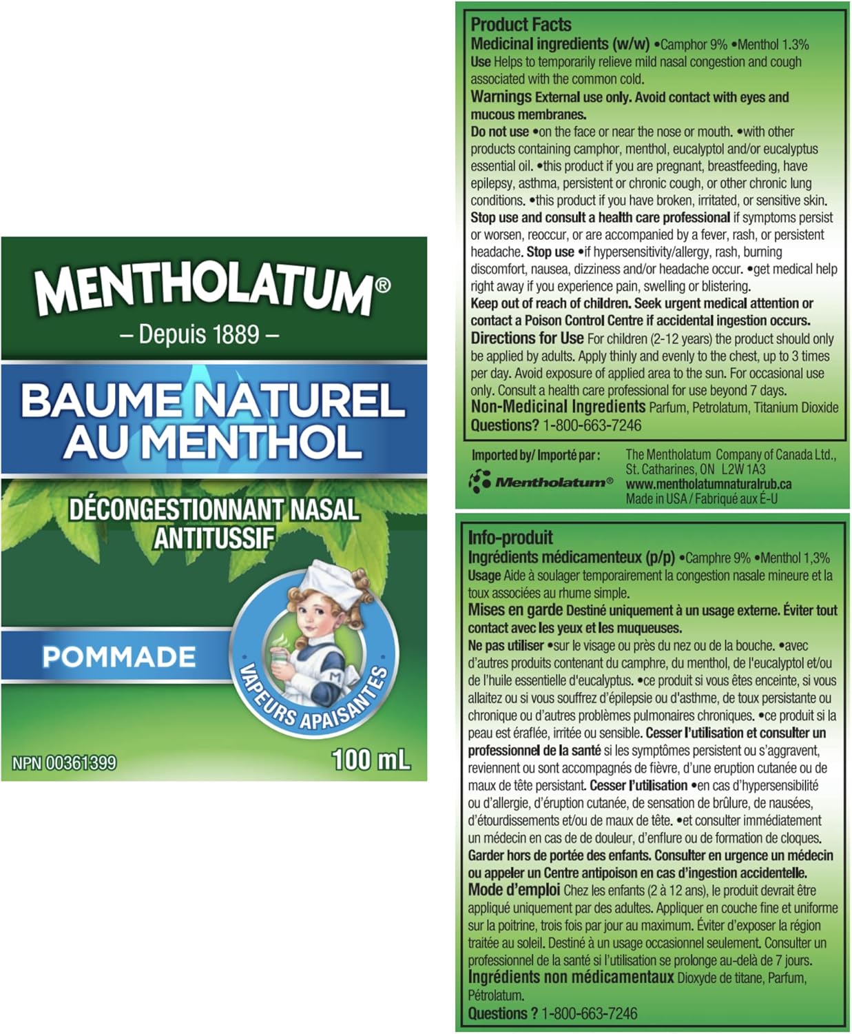 曼秀雷敦天然薄荷醇擦膏,汽化擦剂,止咳药和鼻塞缓解剂,100ml