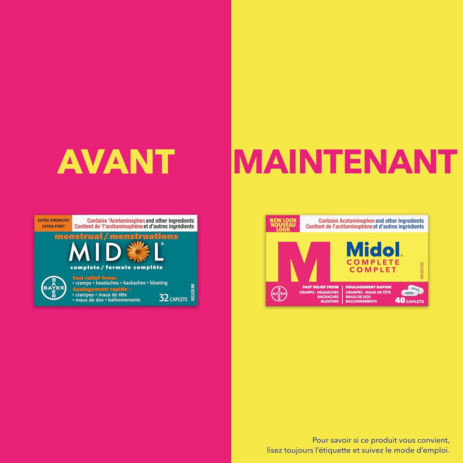 Midol 完全止痛药,快速缓解多种症状的痛经,包括痉挛、头痛、背痛和腹胀(40 粒胶囊)