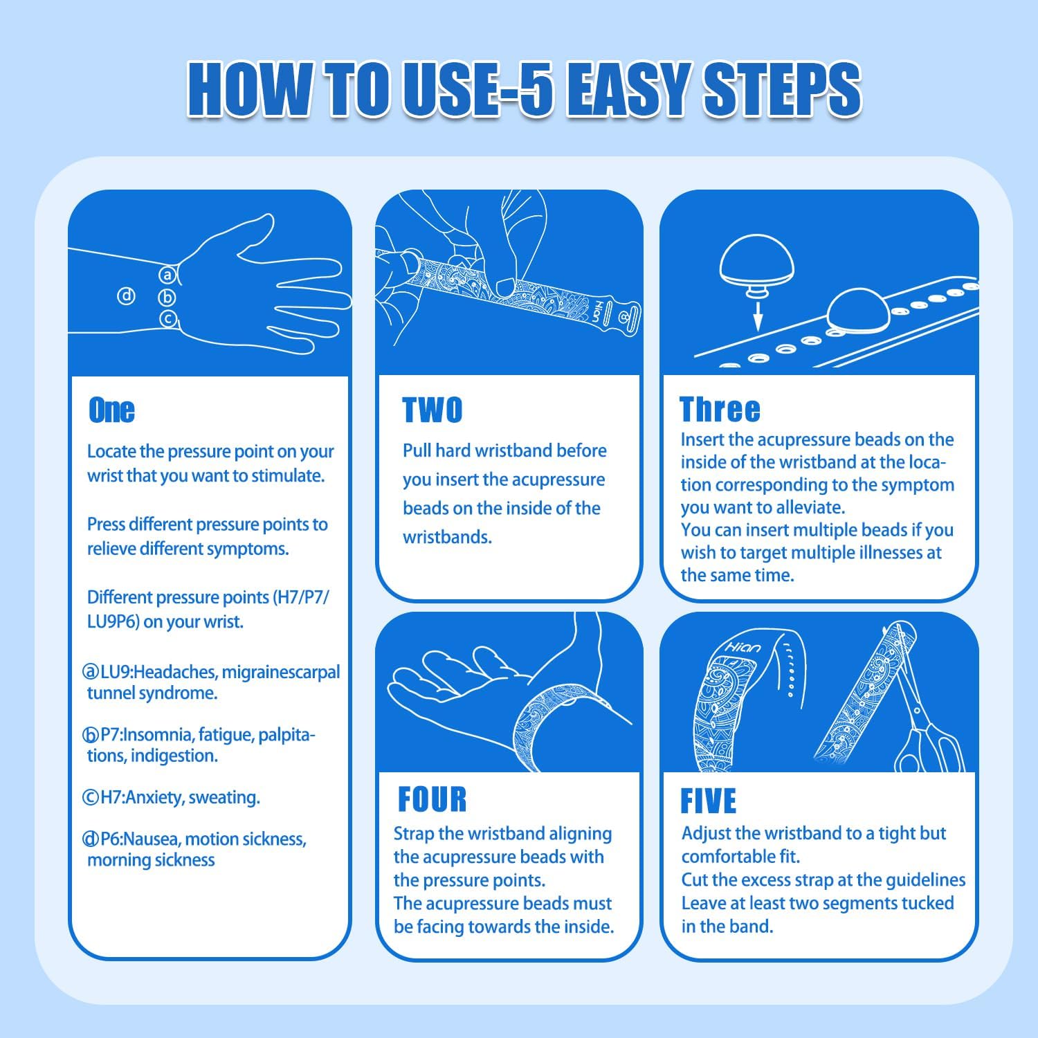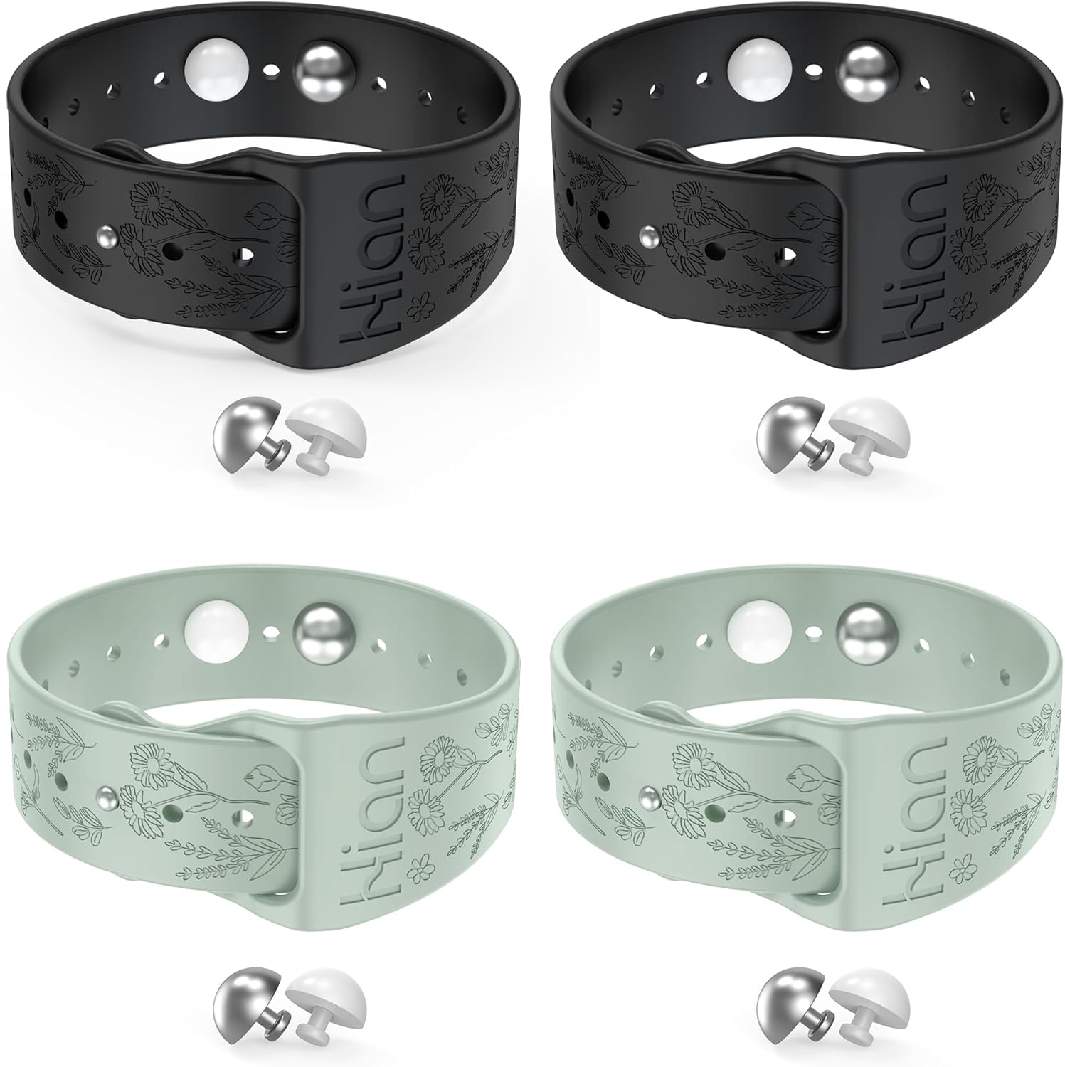 晕车腕带 防恶心指压腕带 晕船腕带 恶心腕带(2对-黑色+绿柱石)-雏菊