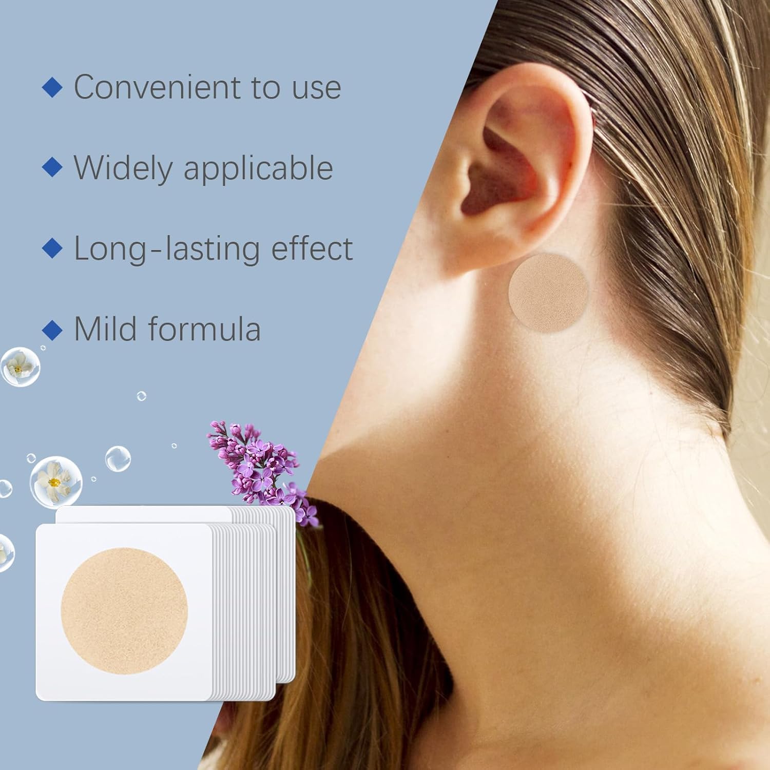 有效缓解晕动病:晕动病贴可快速缓解因乘坐汽车、轮船、飞机和火车引起的恶心、呕吐、头晕和食欲不振等症状。安全无毒,无副作用:这款耳后晕动病贴采用天然成分制成,适用于男性、女性、青少年和4岁以上儿童,不会引起困倦,也无化学风险。快速起效,持久缓解:出行前10分钟贴上晕动病贴,药效可持续1-3天。对于严重病例,可贴在耳后和肚脐上,效果更佳。使用方便 - 撕下即贴:只需将晕动病贴贴在耳后或腹部,即可快速缓解晕动病,且不会弄脏。小巧便携:这款晕动病贴轻巧便携,可放入口袋、包包或行李箱中,是旅行的理想之选。