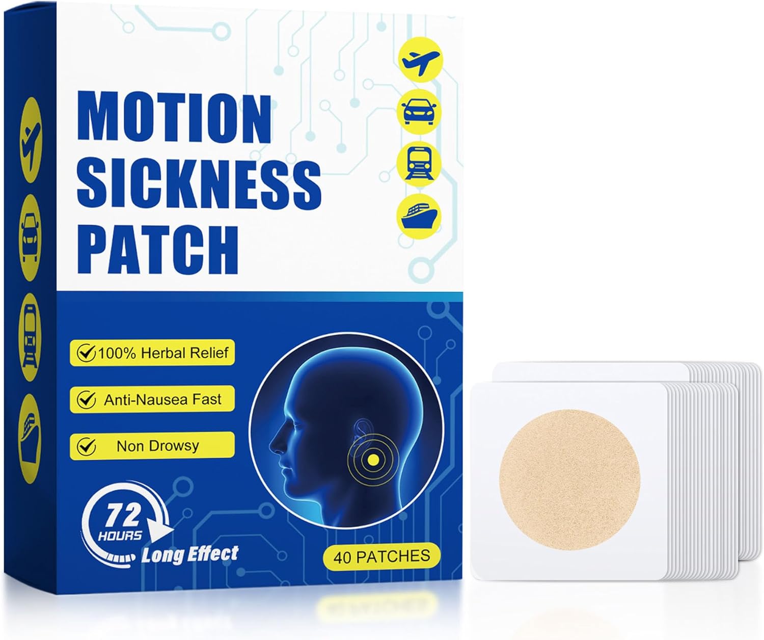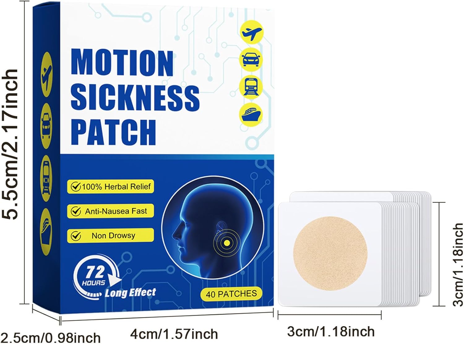 晕车贴 40 片装 - 邮轮晕船贴 缓解邮轮、汽车、轮船、飞机晕船晕车引起的头晕
