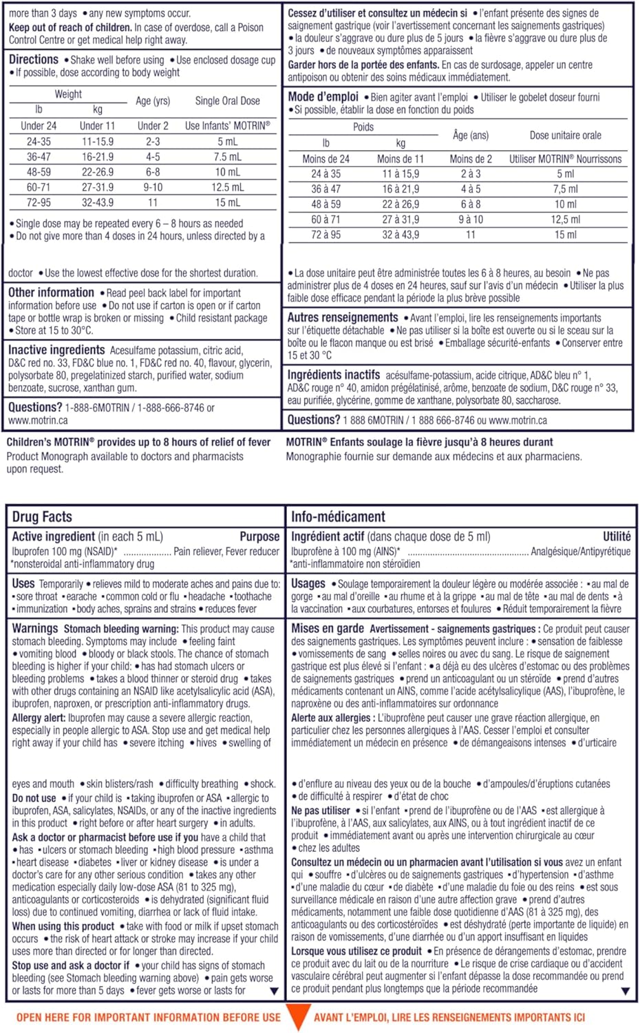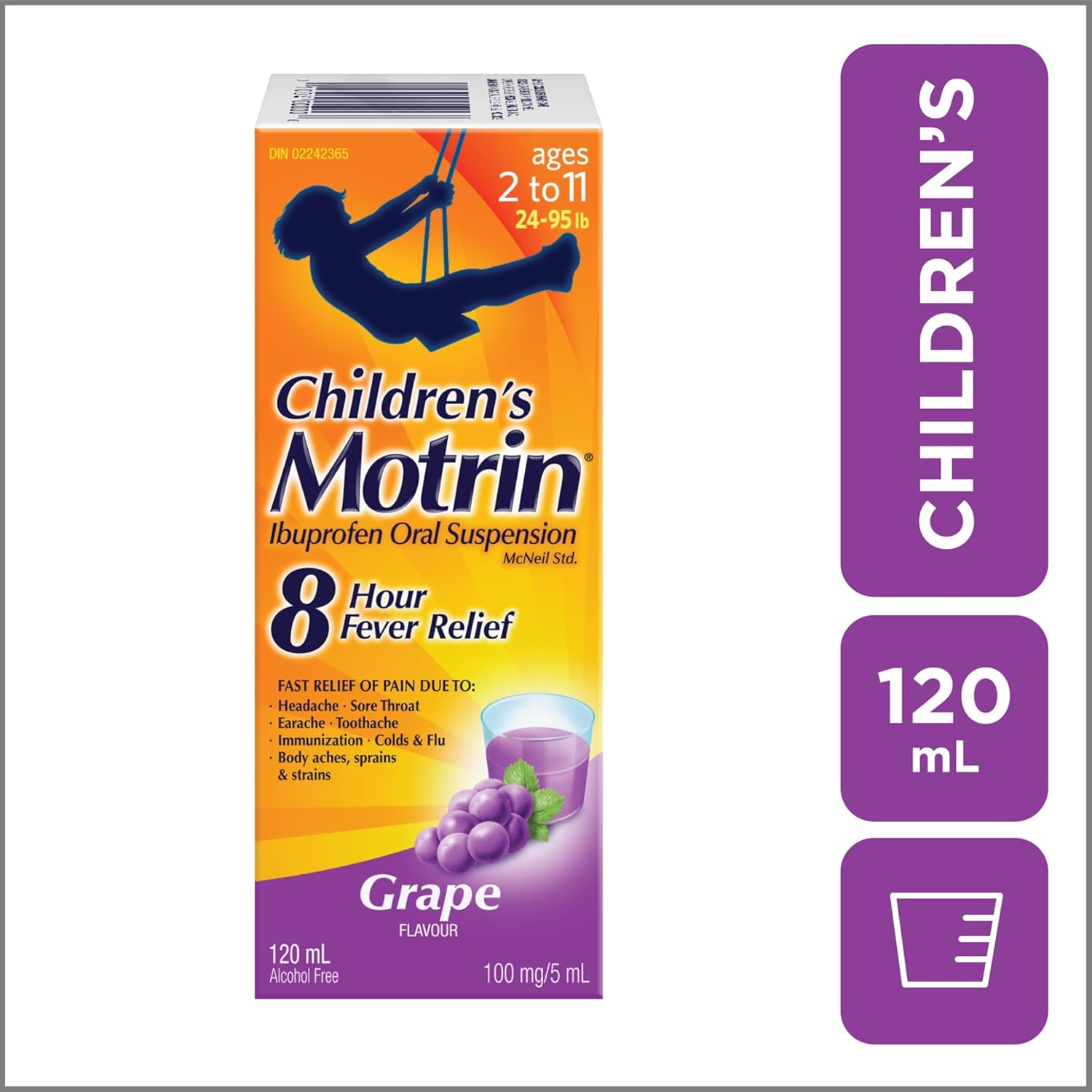 Motrin 儿童液体止痛药,退烧长达 8 小时,布洛芬,葡萄味,无色素 120ml