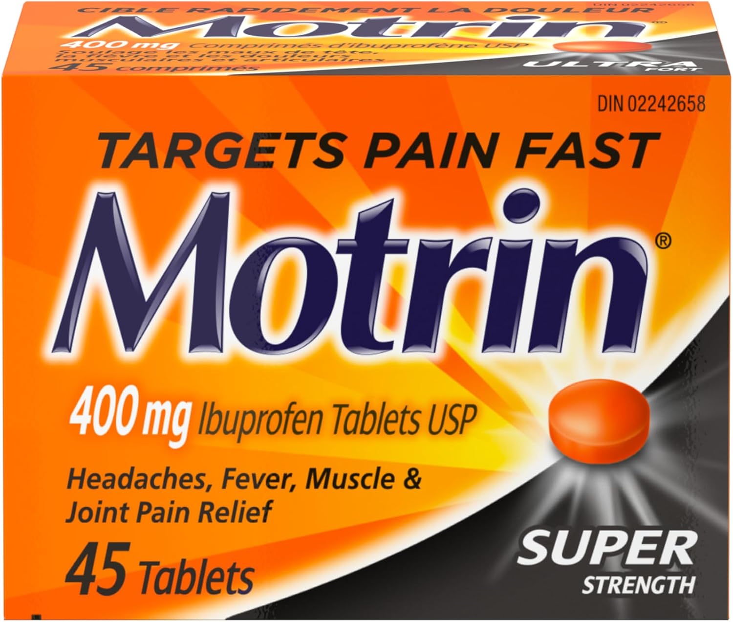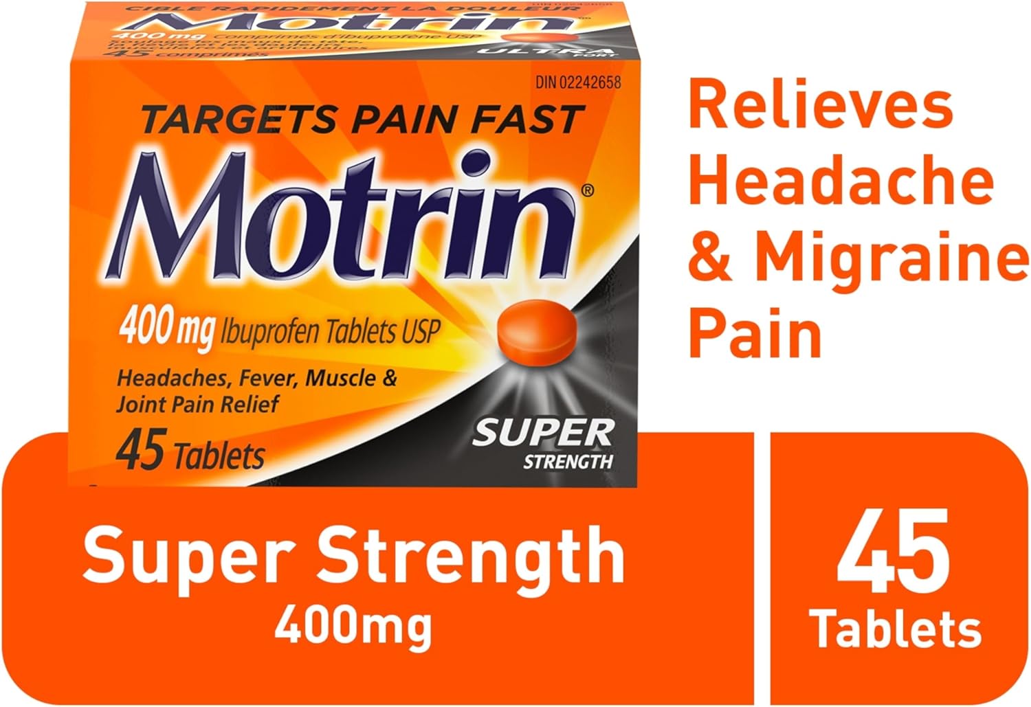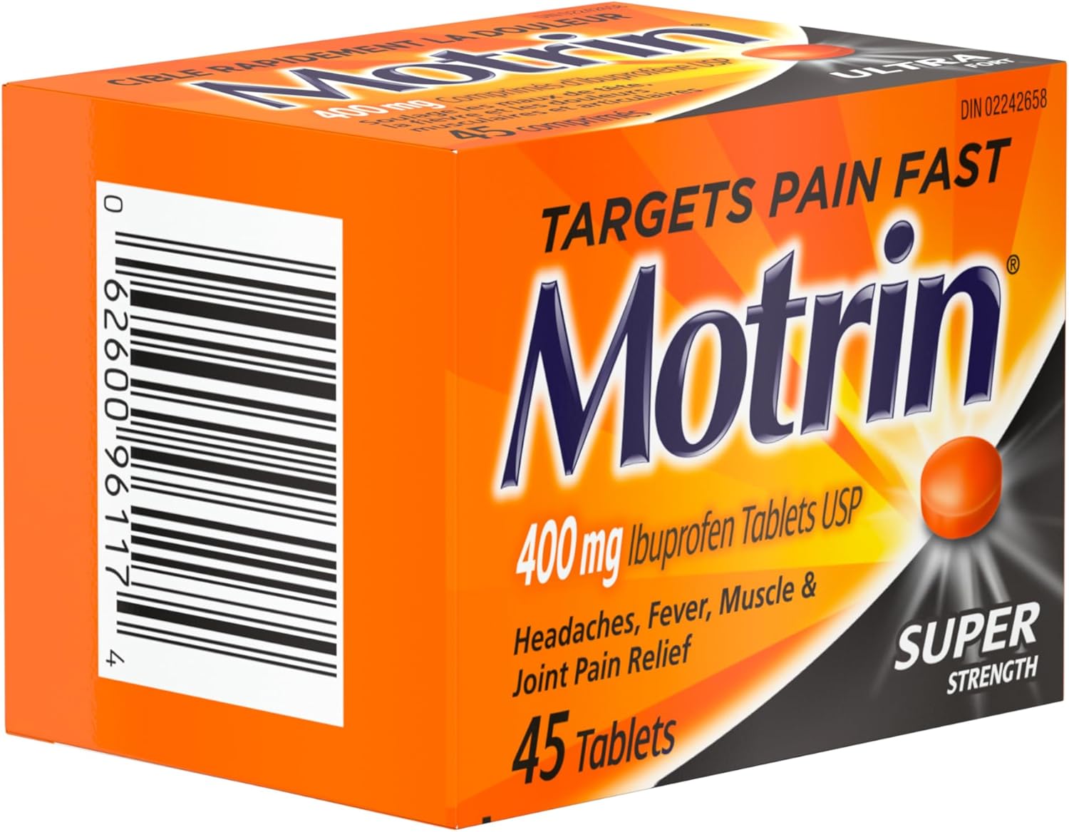 Motrin 超强效片剂,缓解痛经、头痛、背痛,布洛芬 400 毫克,45 片