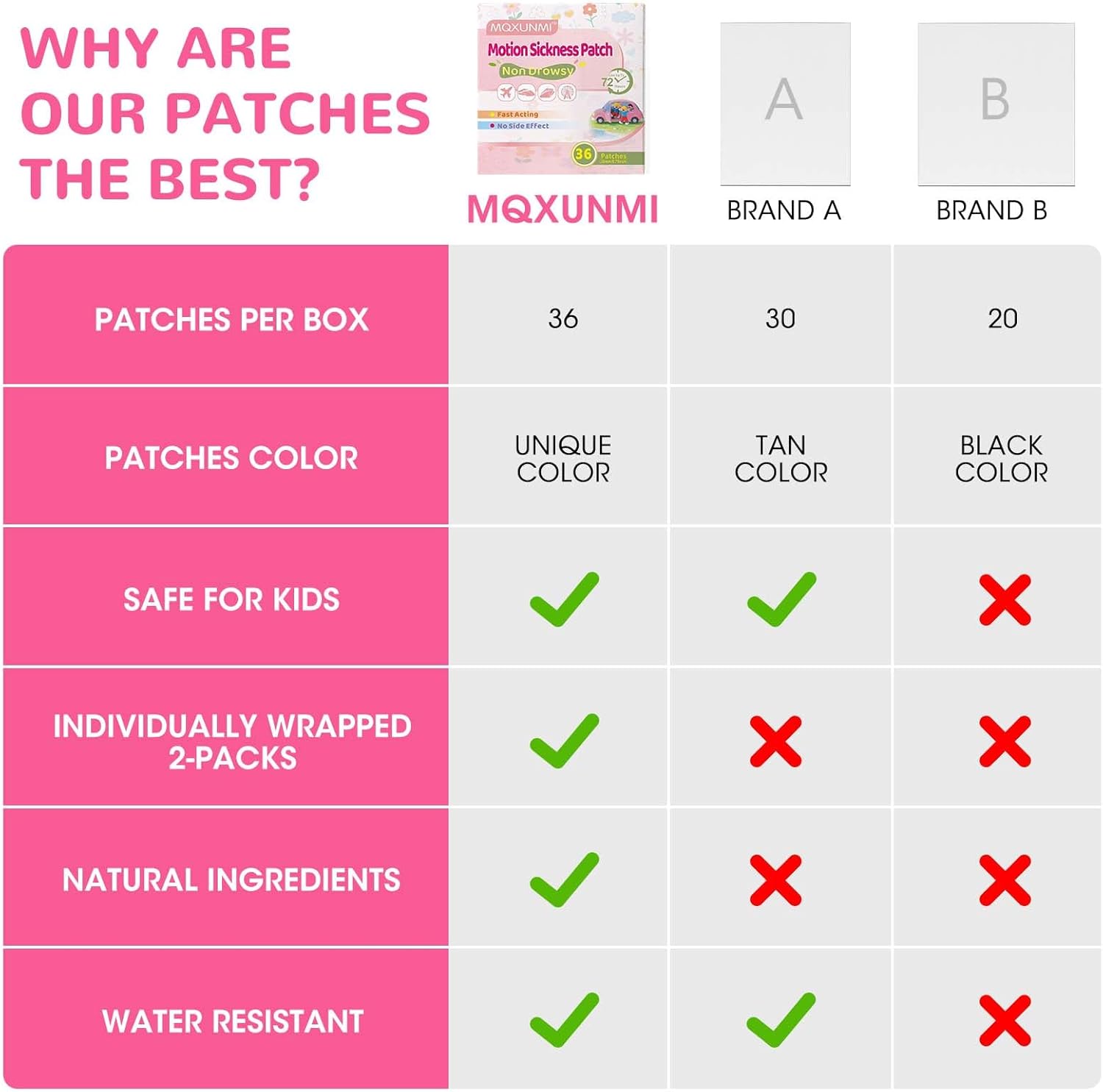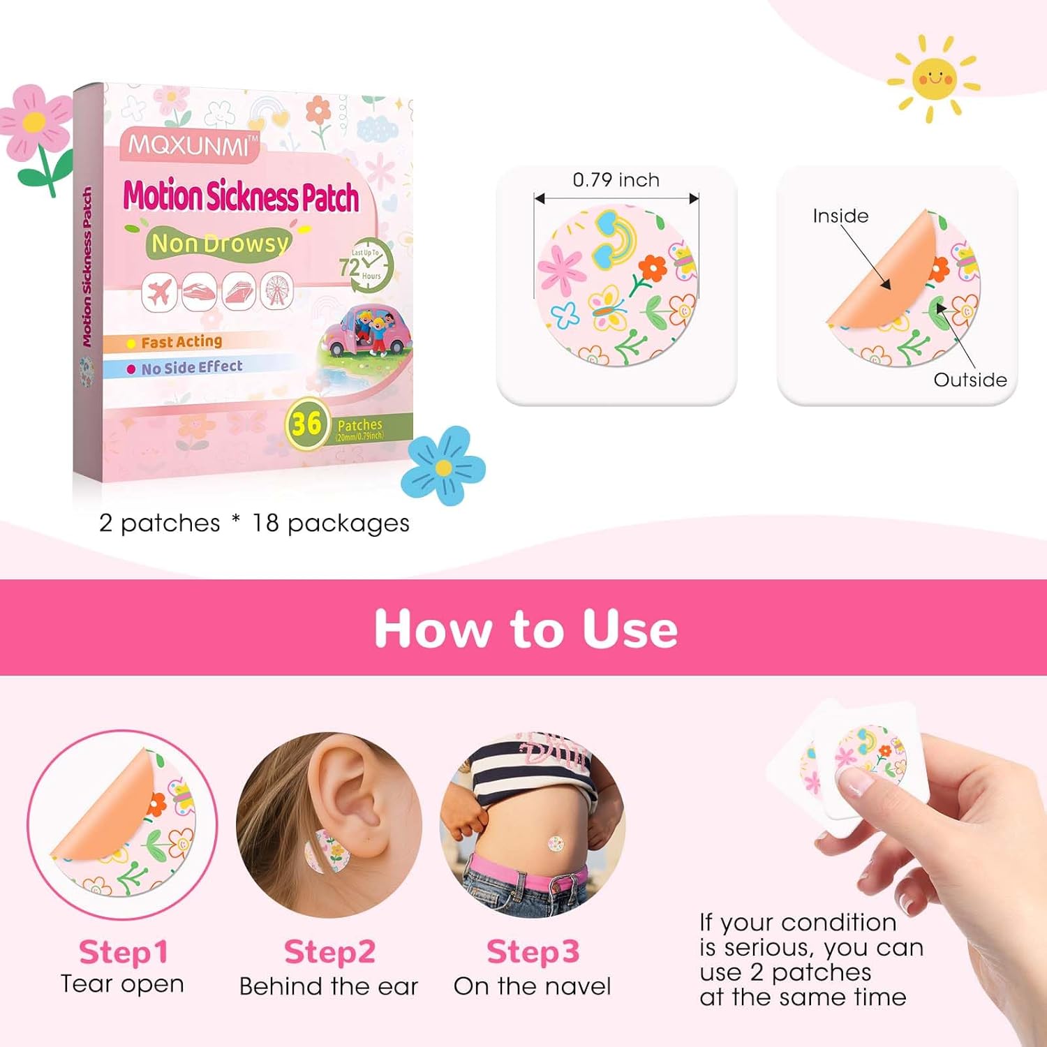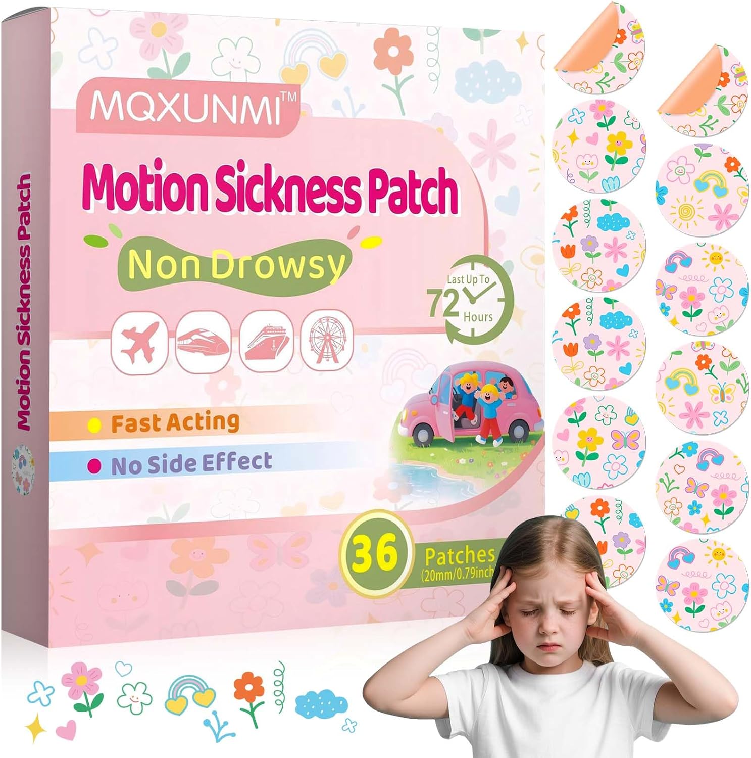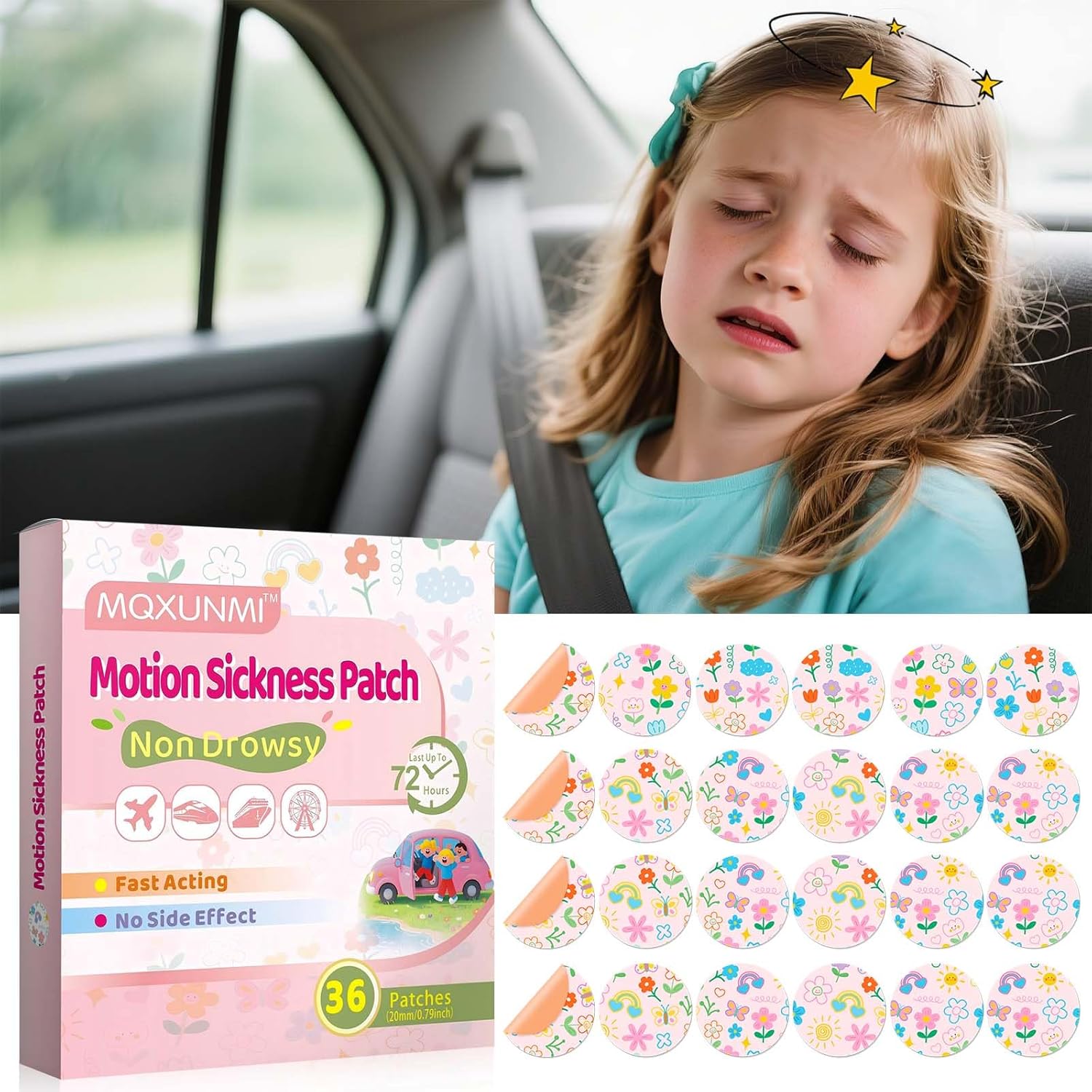 MQXUNMI 36片装晕车贴,不瞌睡晕船贴,缓解晕车晕船引起的头晕,适用于游轮,旅行必备品,定制花朵图案