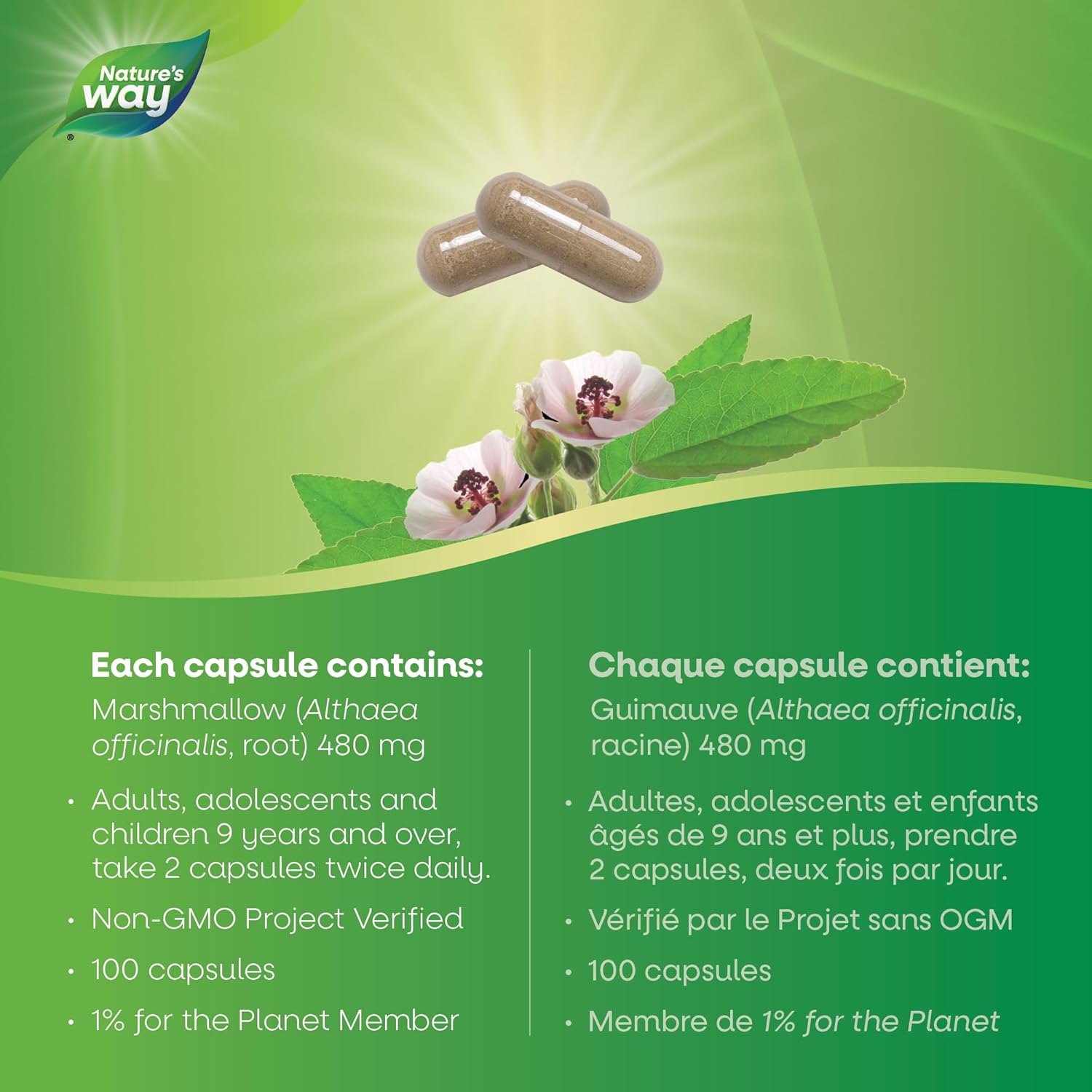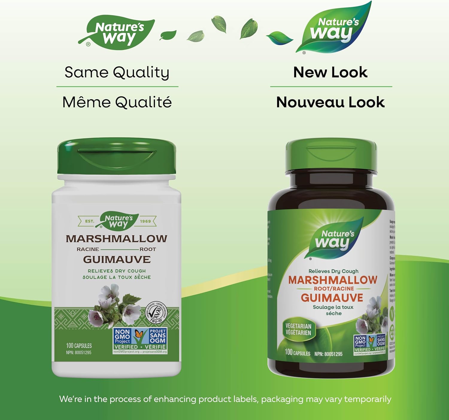 Nature’s Way 药蜀葵根。Nature’s Way 药蜀葵根胶囊每粒含 480 毫克药蜀葵根提取物,可缓解口腔和咽喉黏膜刺激以及相关的干咳。这款 100% 素食补充剂已通过非转基因项目认证。Nature’s Way 的草本补充剂、维生素和 Omega-3 脂肪酸配方旨在简化您的健康日常。50 多年来,Nature’s Way 以优质和值得信赖而闻名。我们致力于使用纯净原料,并经过严格测试,这为我们赢得了加拿大最值得信赖的天然产品品牌之一的美誉。