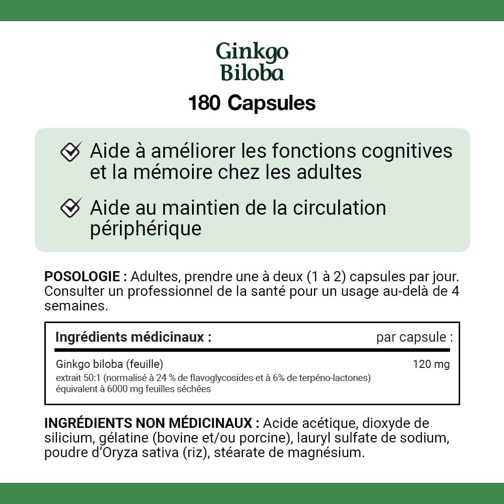 自然之宝银杏叶胶囊,120 毫克,超值装,有助于增强认知功能,有助于支持外周循环,成人适用,180 粒