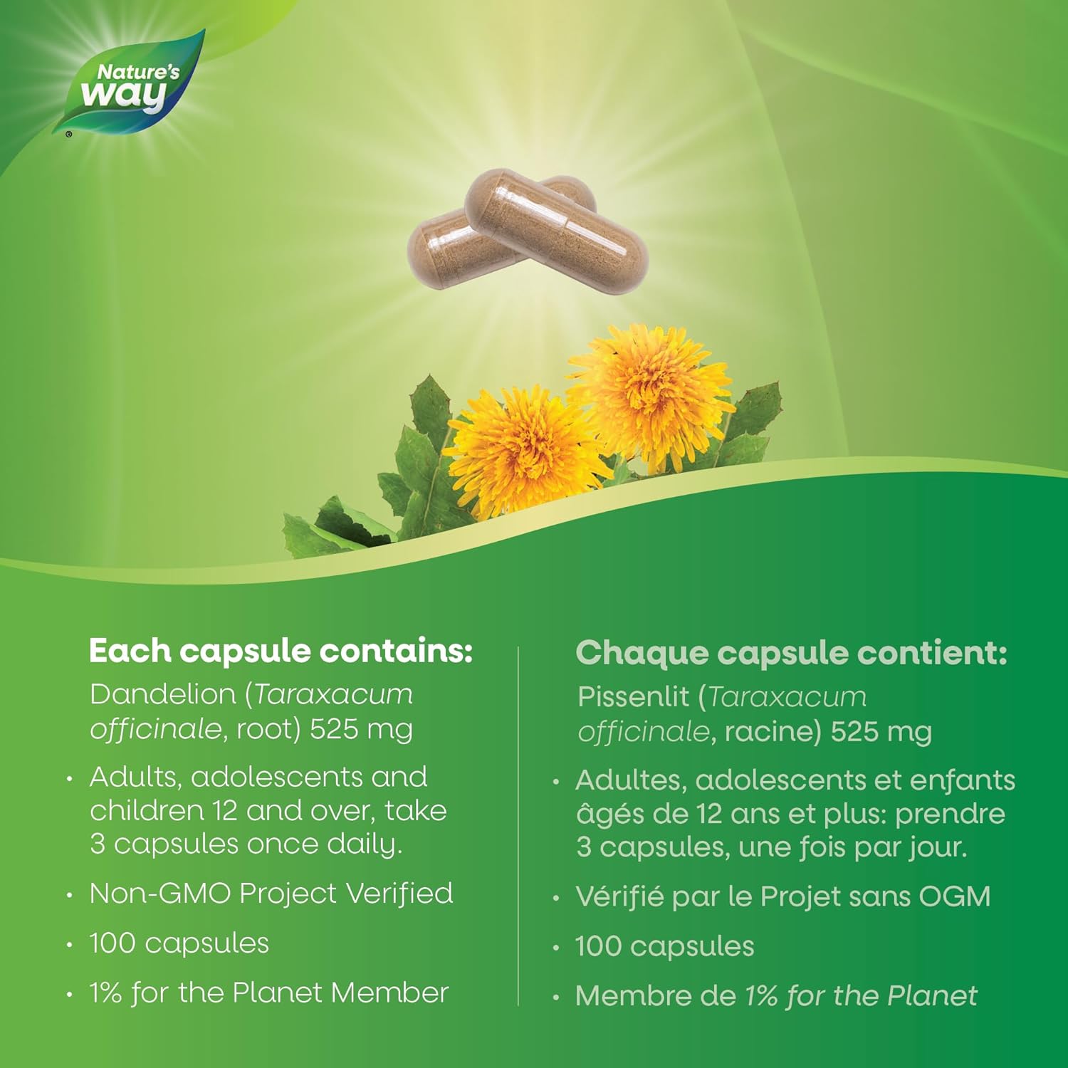 Nature's Way 蒲公英根消化补充剂 - 刺激食欲并增加胆汁流量 - 食欲刺激剂 - 非转基因认证 - 100 粒素食胶囊