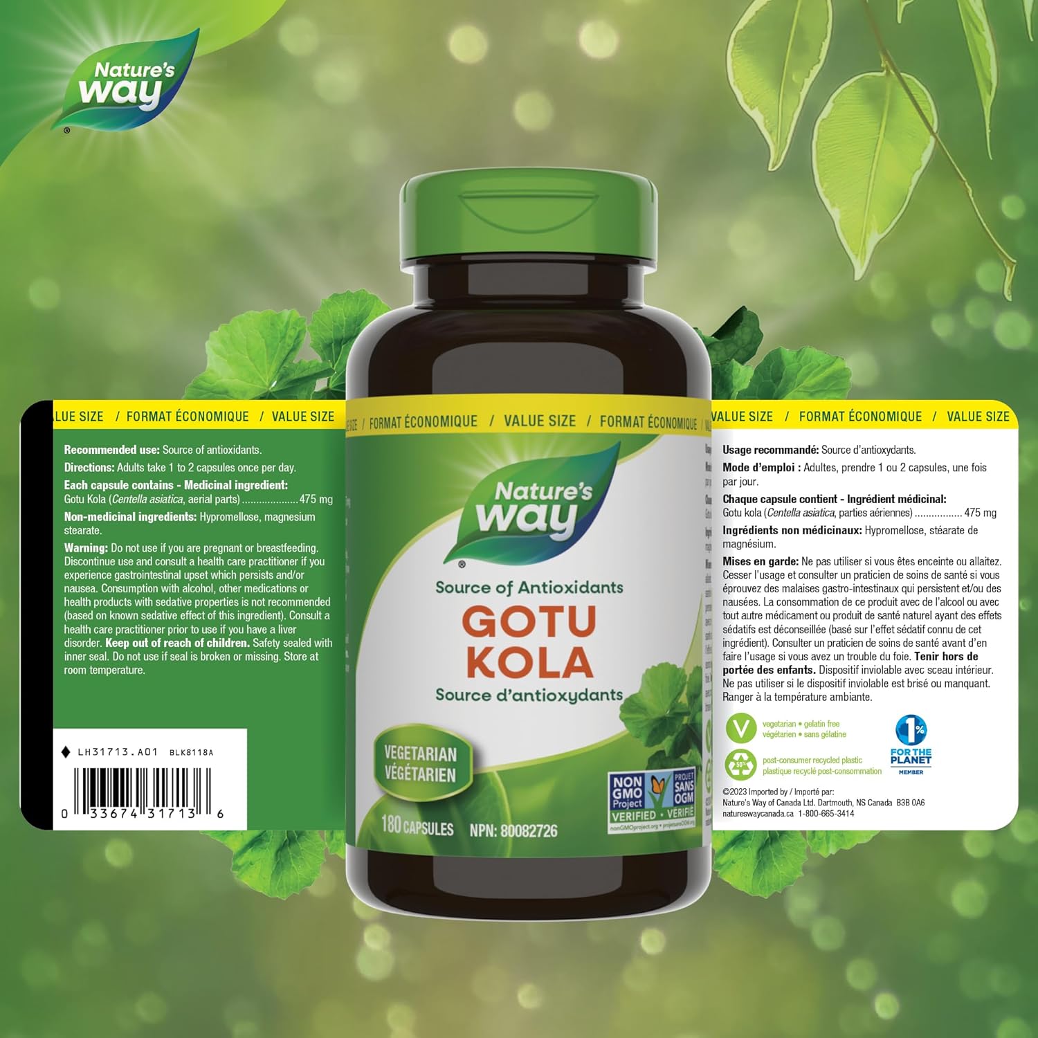 Nature's Way 积雪草,一款富含抗氧化剂的天然健康产品,助您提升健康生活。每瓶含 180 粒素食胶囊。凭借 50 多年的关爱,无论您在健康之旅的哪个阶段,我们都会与您携手,提升您的健康水平,赋能您。我们相信健康源于内在,Nature's Way 产品正是为此而生,提供您值得信赖的优质天然健康产品。Nature's Way 加拿大公司是“1% for the Planet”组织的骄傲成员,这意味着该产品的部分收益将通过我们的合作伙伴关系支持土地保护和环境保护工作。选择 Nature's Way 积雪草,为您的健康之旅增添一份值得信赖的活力。