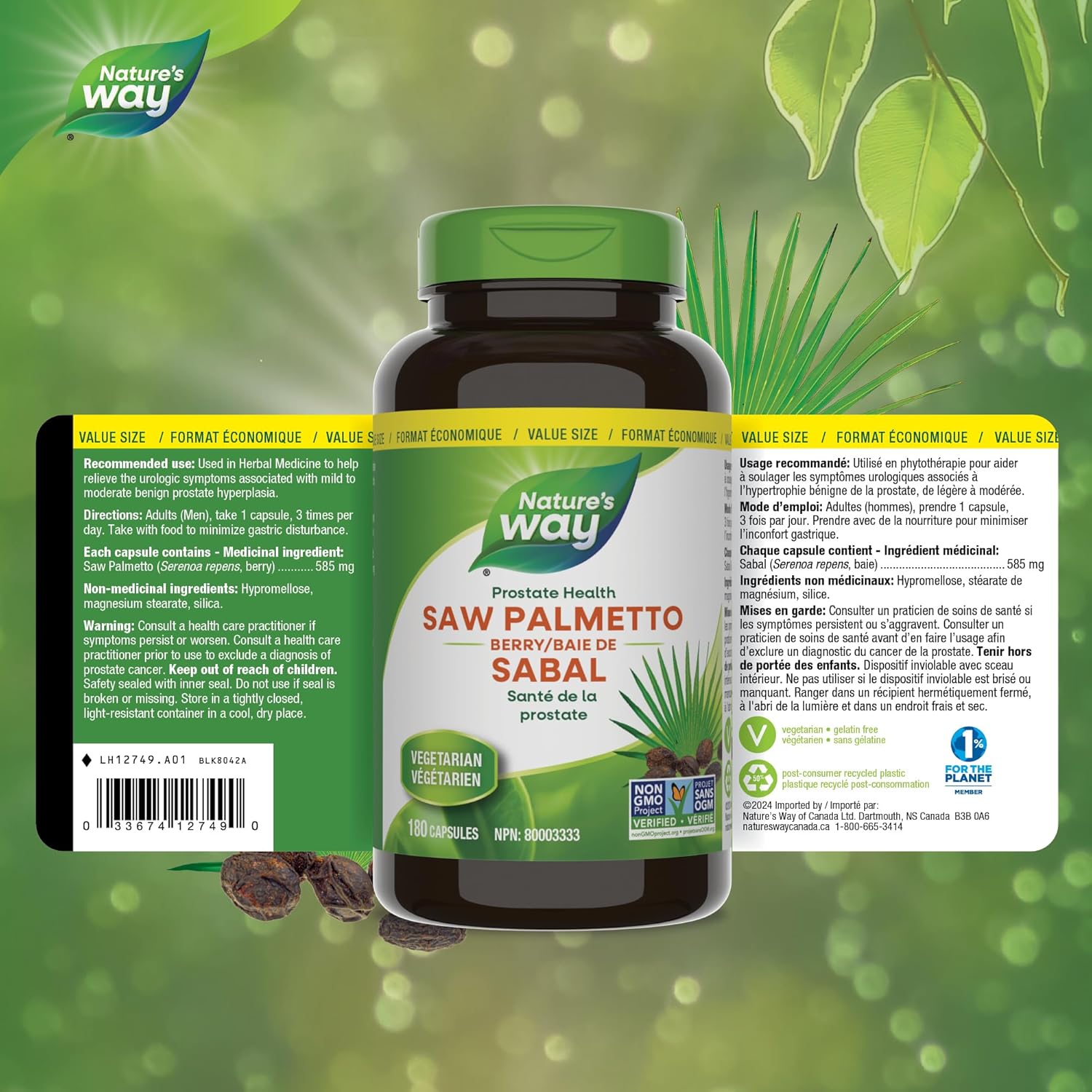 Nature's Way 锯棕榈浆果用于前列腺保健。有助于缓解良性前列腺增生引起的泌尿系统症状。