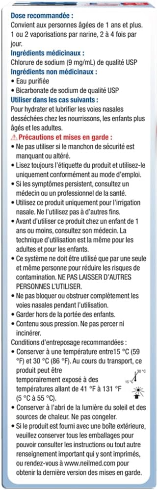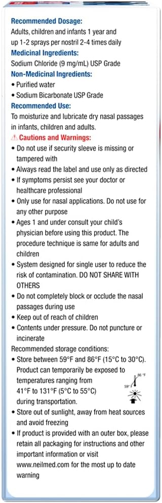 NeilMed NasaMist 生理盐水喷雾是一款集鼻腔保湿和生理盐水冲洗于一体的多功能喷雾。使用专门设计的喷嘴,舒缓、滋润并清洁鼻腔。全天然、无防腐剂和药物配方,可安全用于滋润、润滑和清洁干燥的鼻腔。