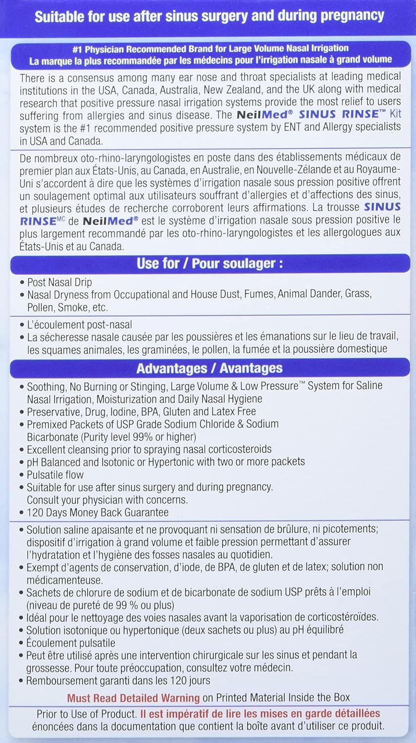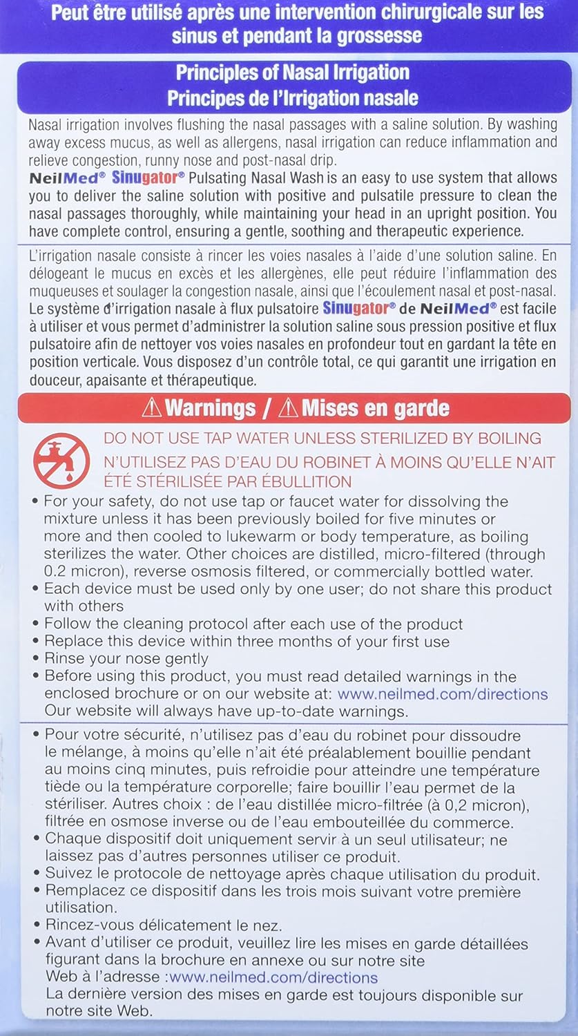 NeilMed 鼻窦冲洗器 - 双速无绳脉动式鼻腔冲洗器,带有 30 个鼻窦冲洗预混包的 USP 级氯化钠和碳酸氢钠。