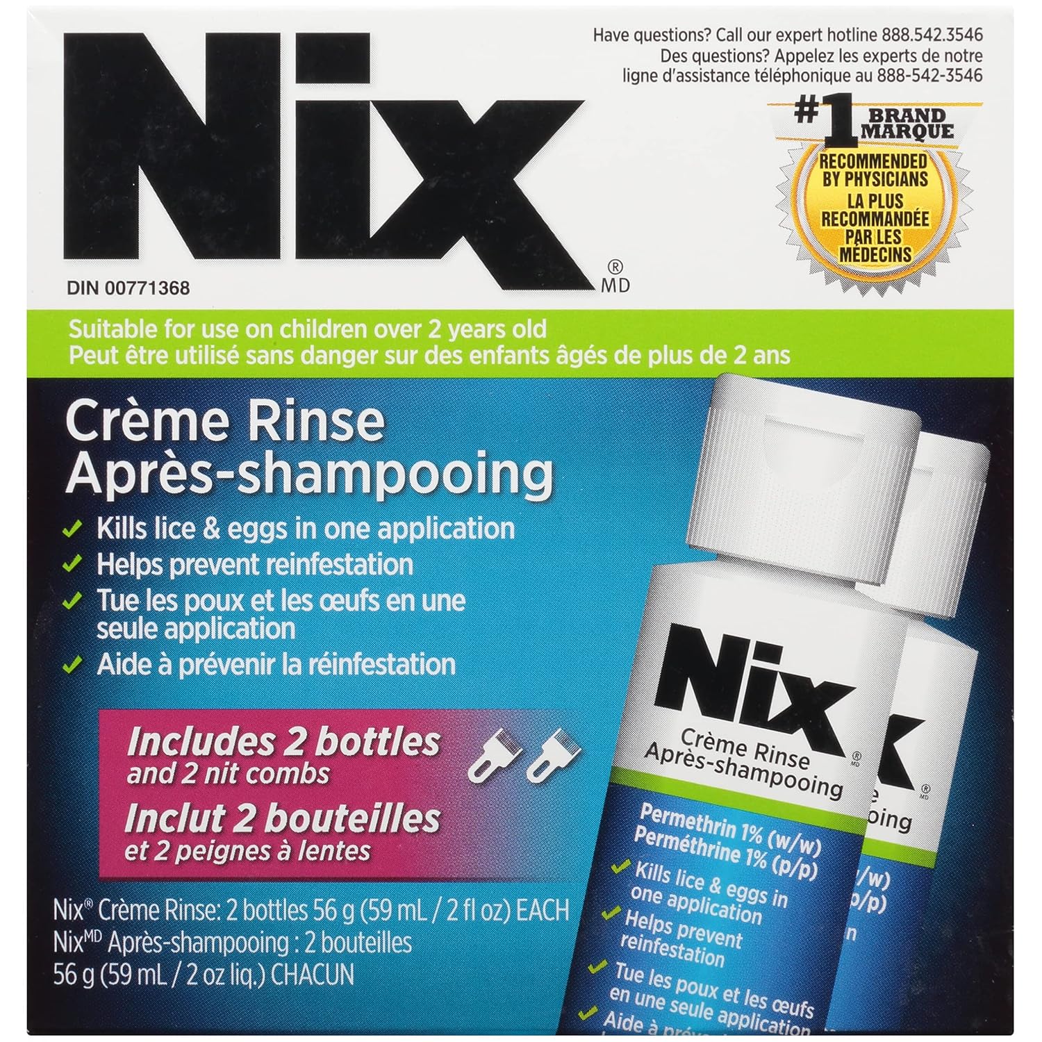 Nix 多包装乳霜冲洗液(含除虱梳)- 112 克 - 有效治疗头虱