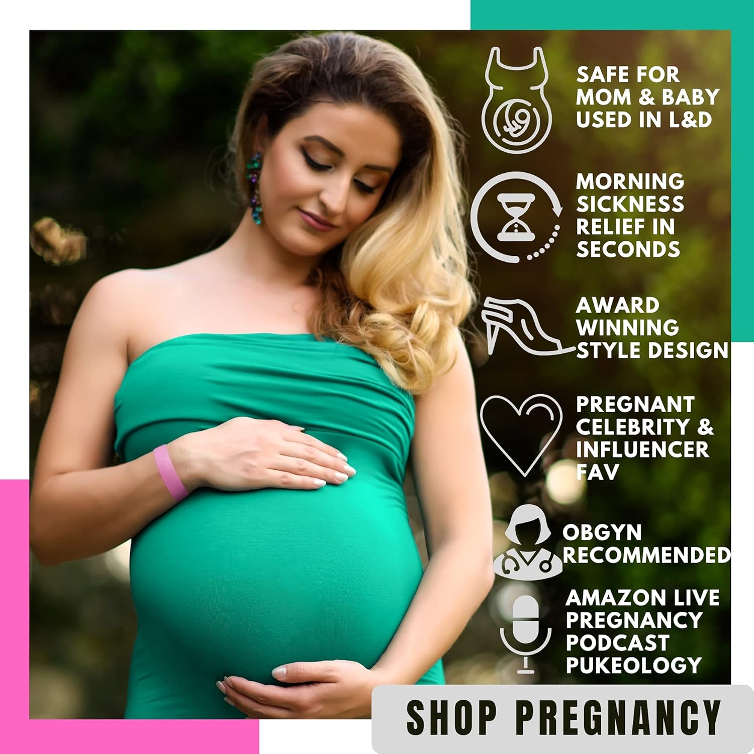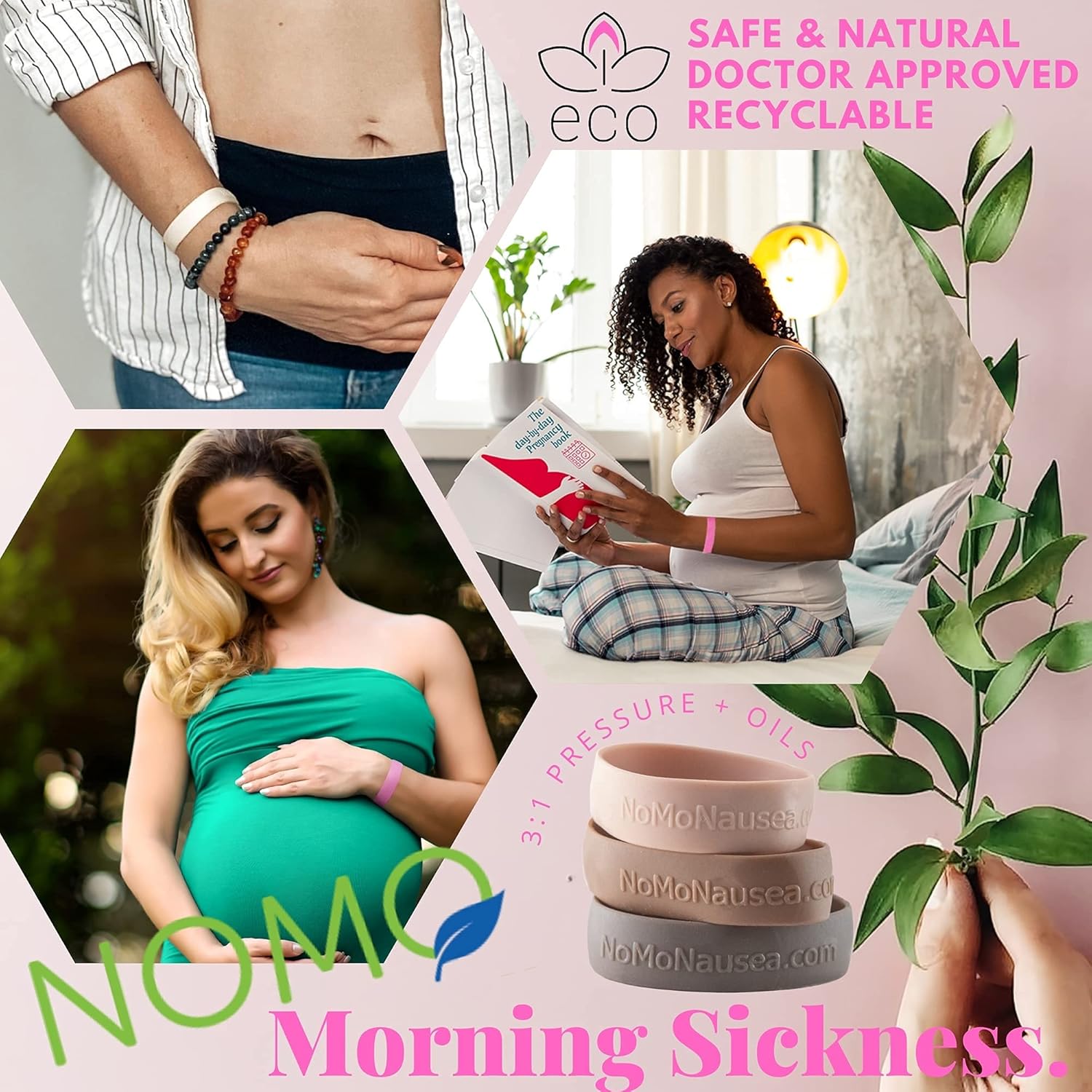 NoMo 恶心即时缓解小粉色芳香疗法止吐带,带穴位按摩功能