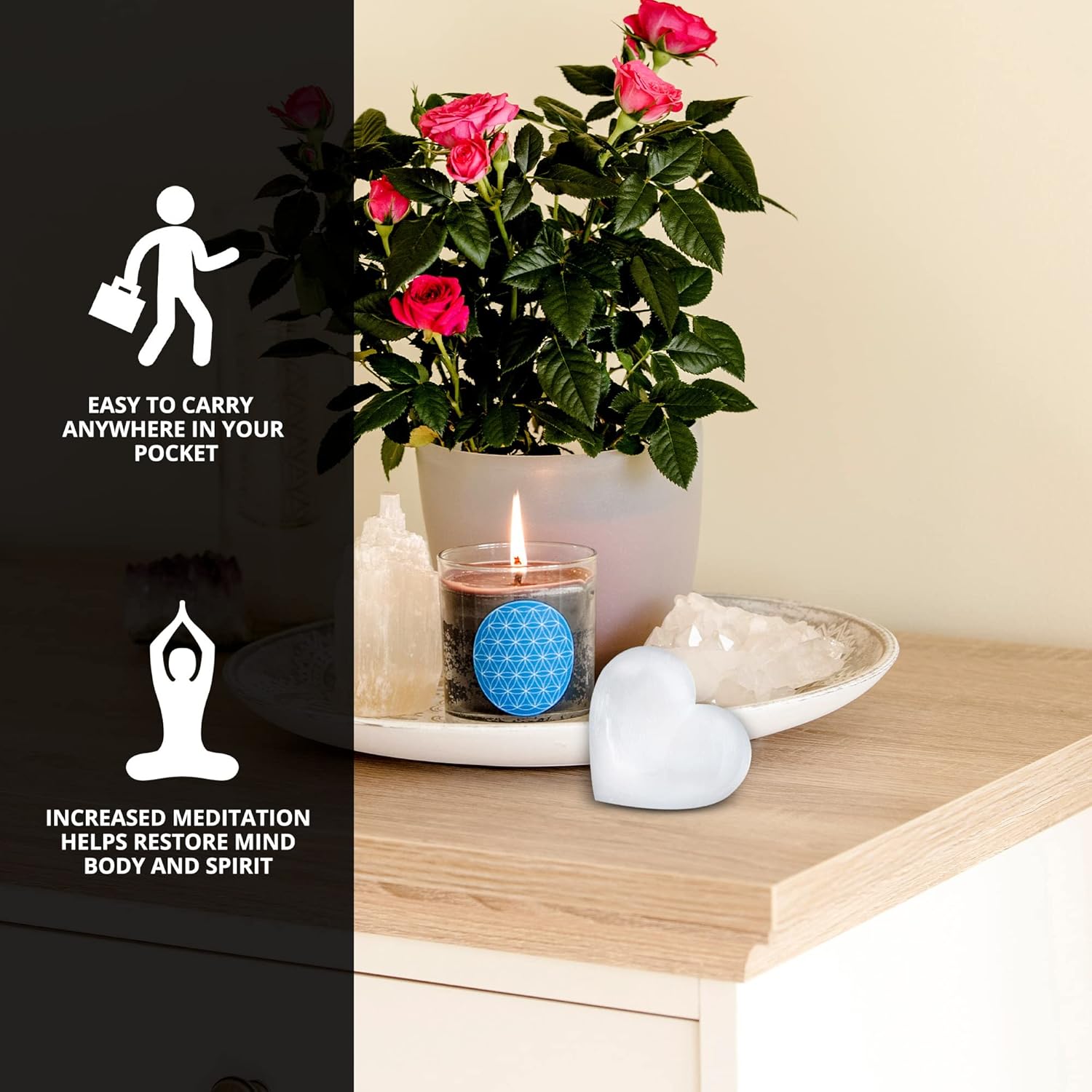 NORTHLANDZ 透石膏心忧掌石,高能量透石膏/缎纹石爱情掌石,用于清洁和保护,具有治愈和镇静作用