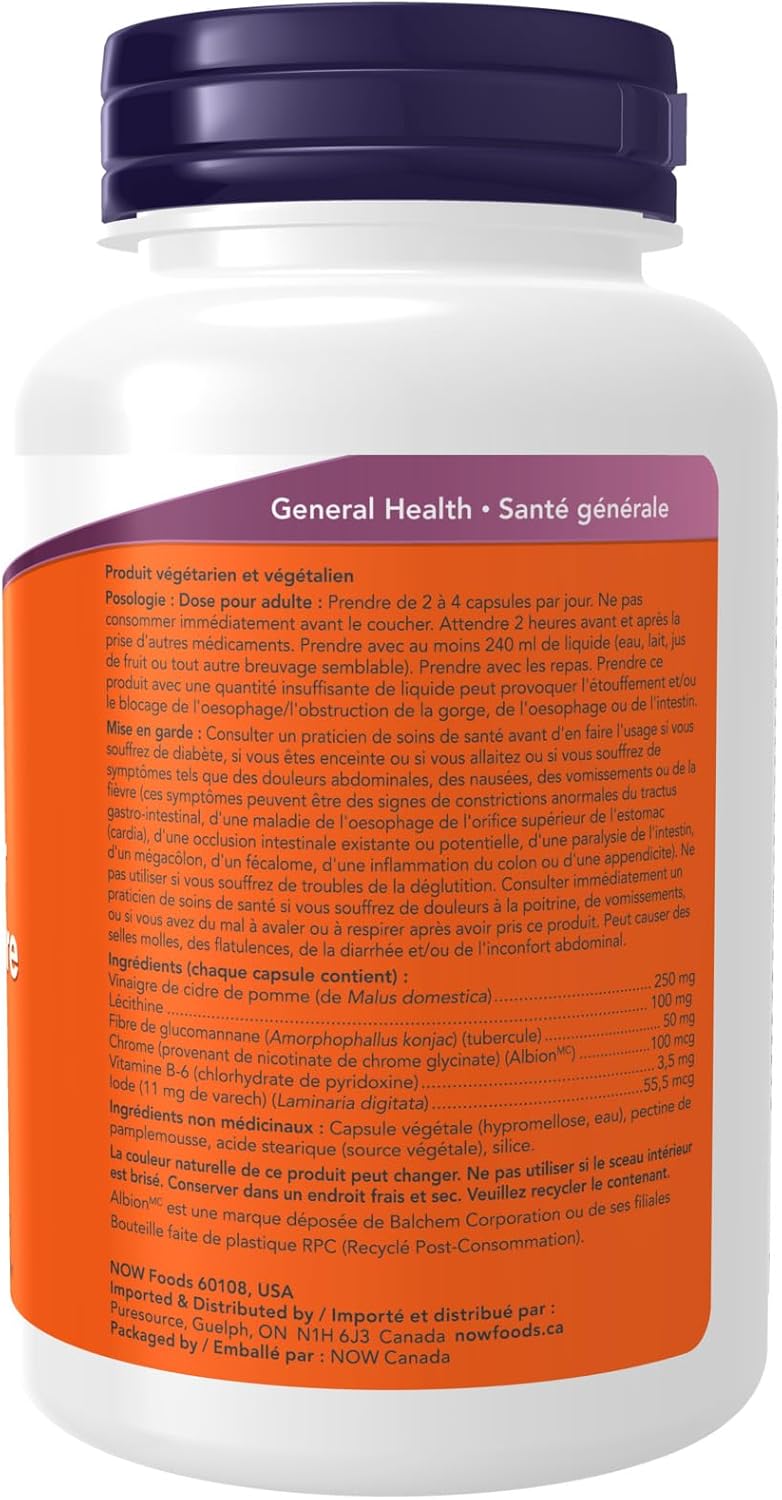 NOW Supplements,苹果醋,含葡萄柚、卵磷脂、B-6、铬、海带和葡甘露聚糖(来自魔芋根),180粒素食胶囊
