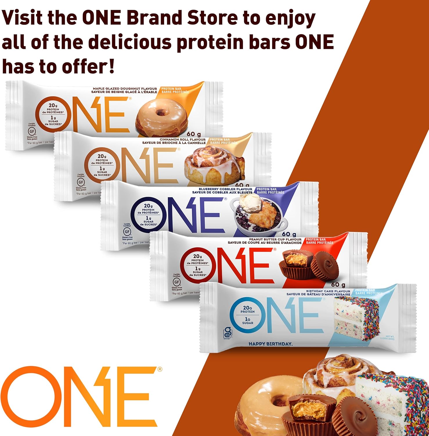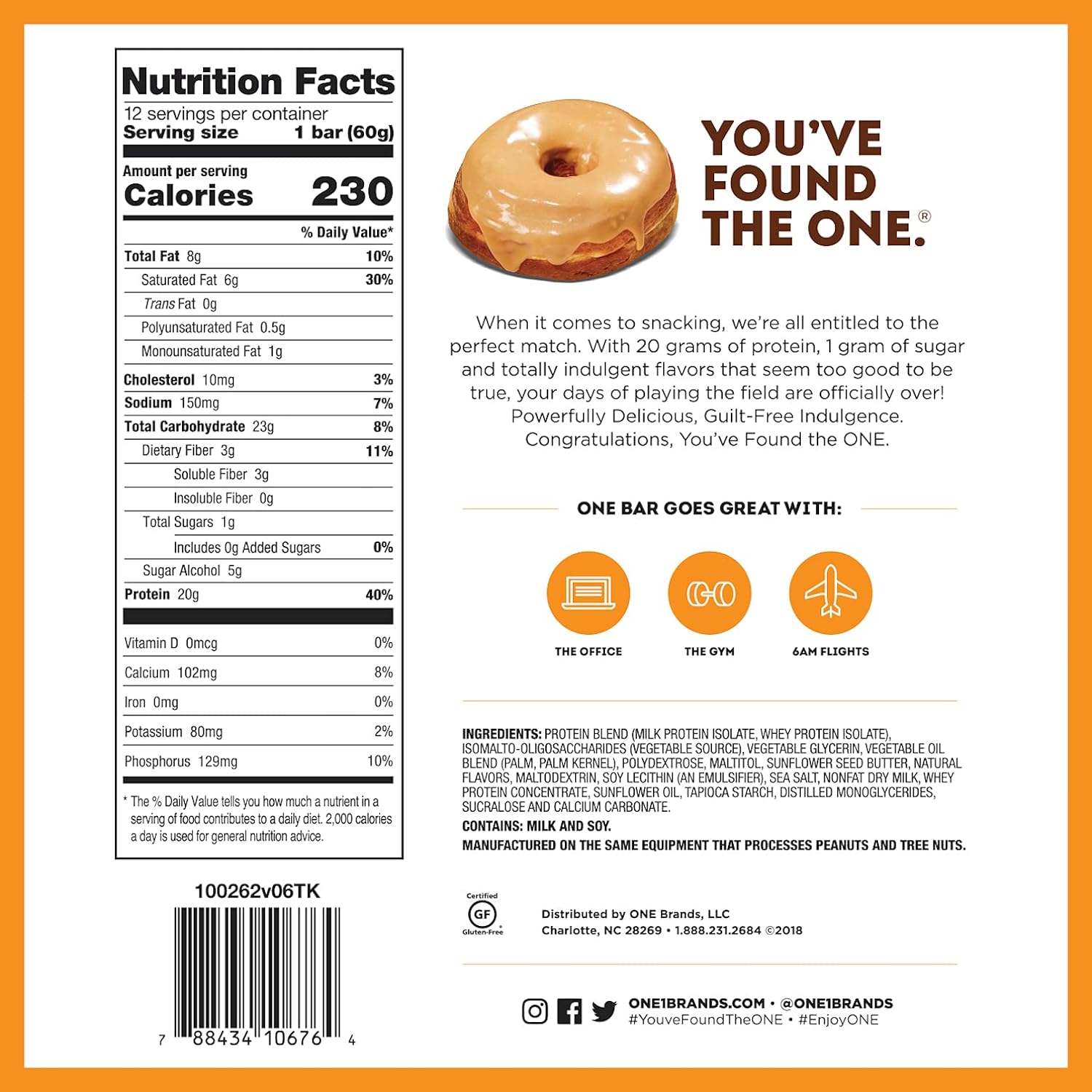 ONE 蛋白棒,枫糖釉面甜甜圈,无麸质蛋白棒,含 20 克蛋白质,仅含 1 克糖,适合高蛋白饮食的零食,60 克(12 包)[包装可能有所不同]