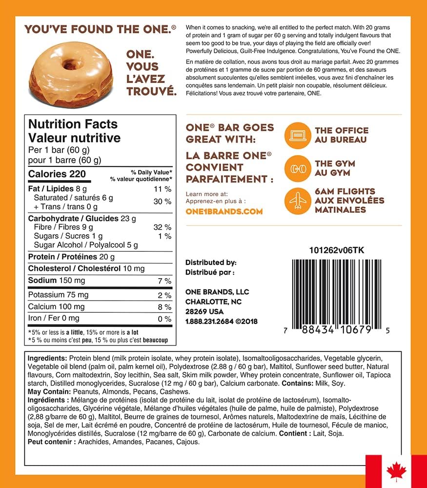 ![ONE 蛋白棒,枫糖釉面甜甜圈,无麸质蛋白棒,含 20 克蛋白质,仅含 1 克糖,适合高蛋白饮食的零食,60 克(12 包)[包装可能有所不同]](http://sfmall.ca/cdn/shop/files/71drkT4vJEL._AC_SL1500.jpg?v=1760077112&width=1445)