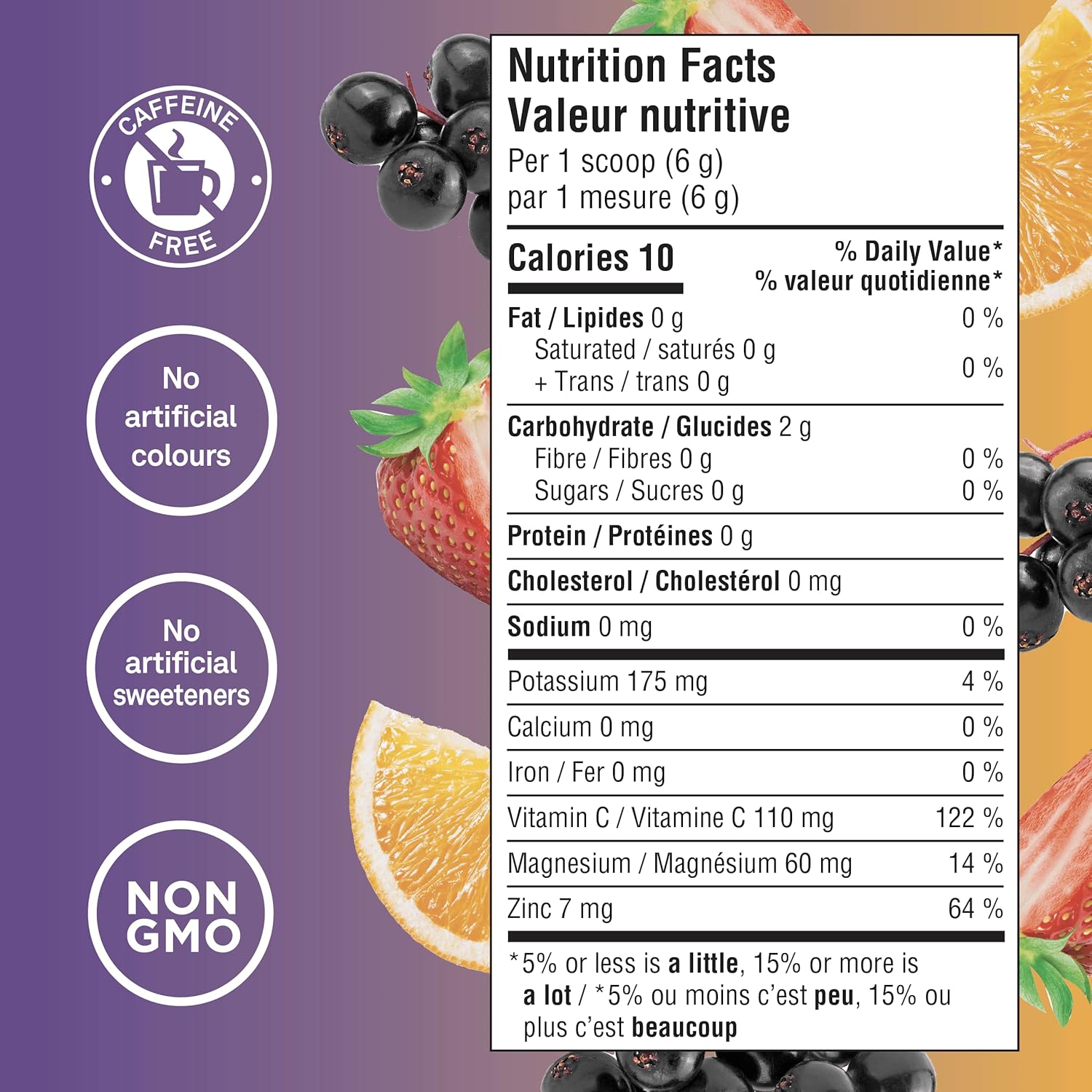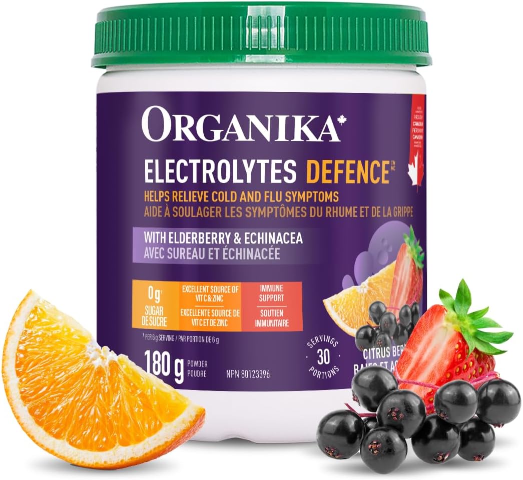 Organika 加拿大制造电解质防御剂,含接骨木莓和紫锥菊 - 柑橘浆果 - 免疫系统支持,无糖补水和电解质补充 - 180 克