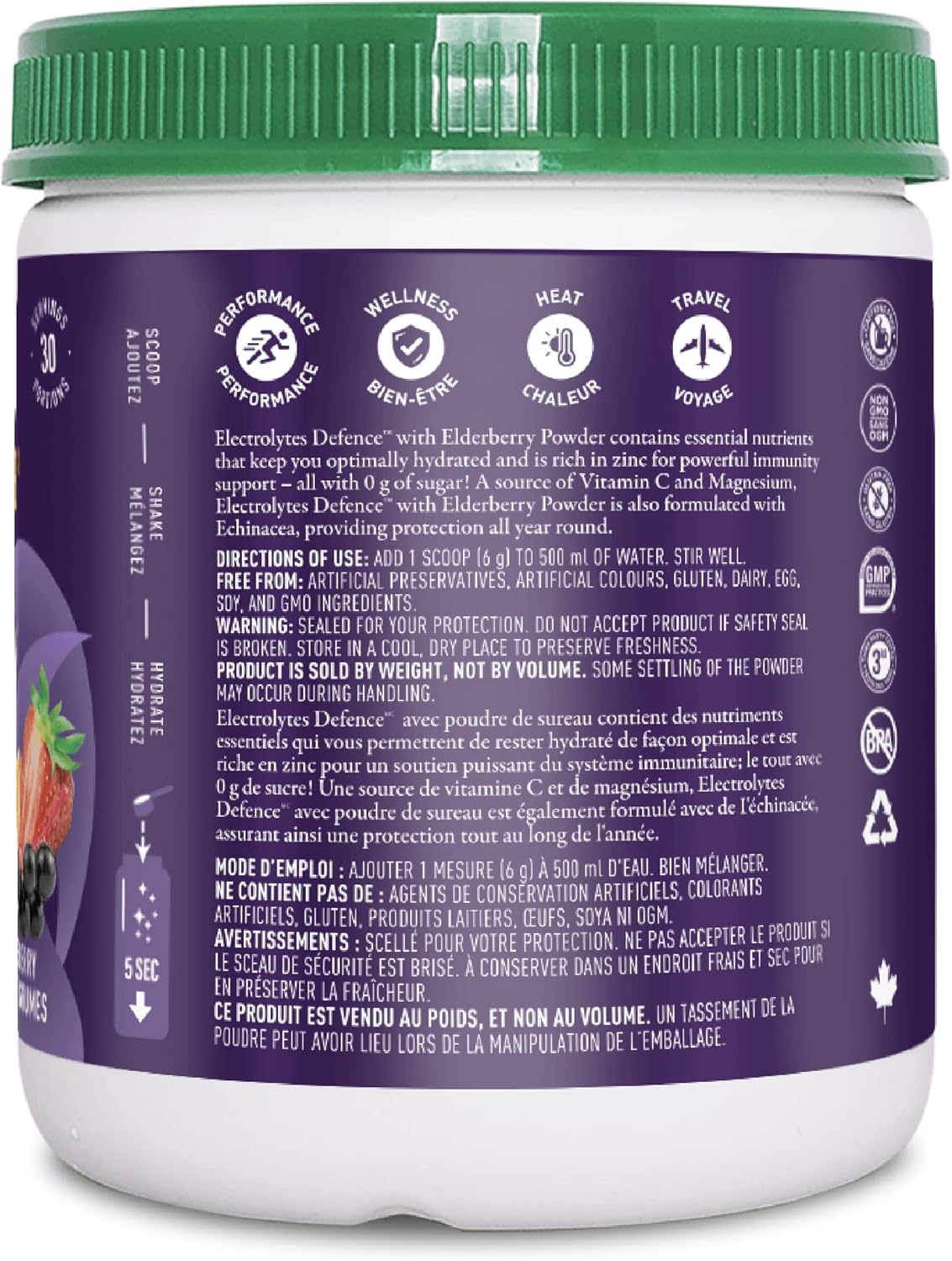 接骨木莓和紫锥菊电解质防御配方富含必需营养素,可保持最佳水分,并富含锌,可强效支持免疫力,且不含糖。本配方富含维生素C和镁,并添加紫锥菊,可全年提供免疫保护。