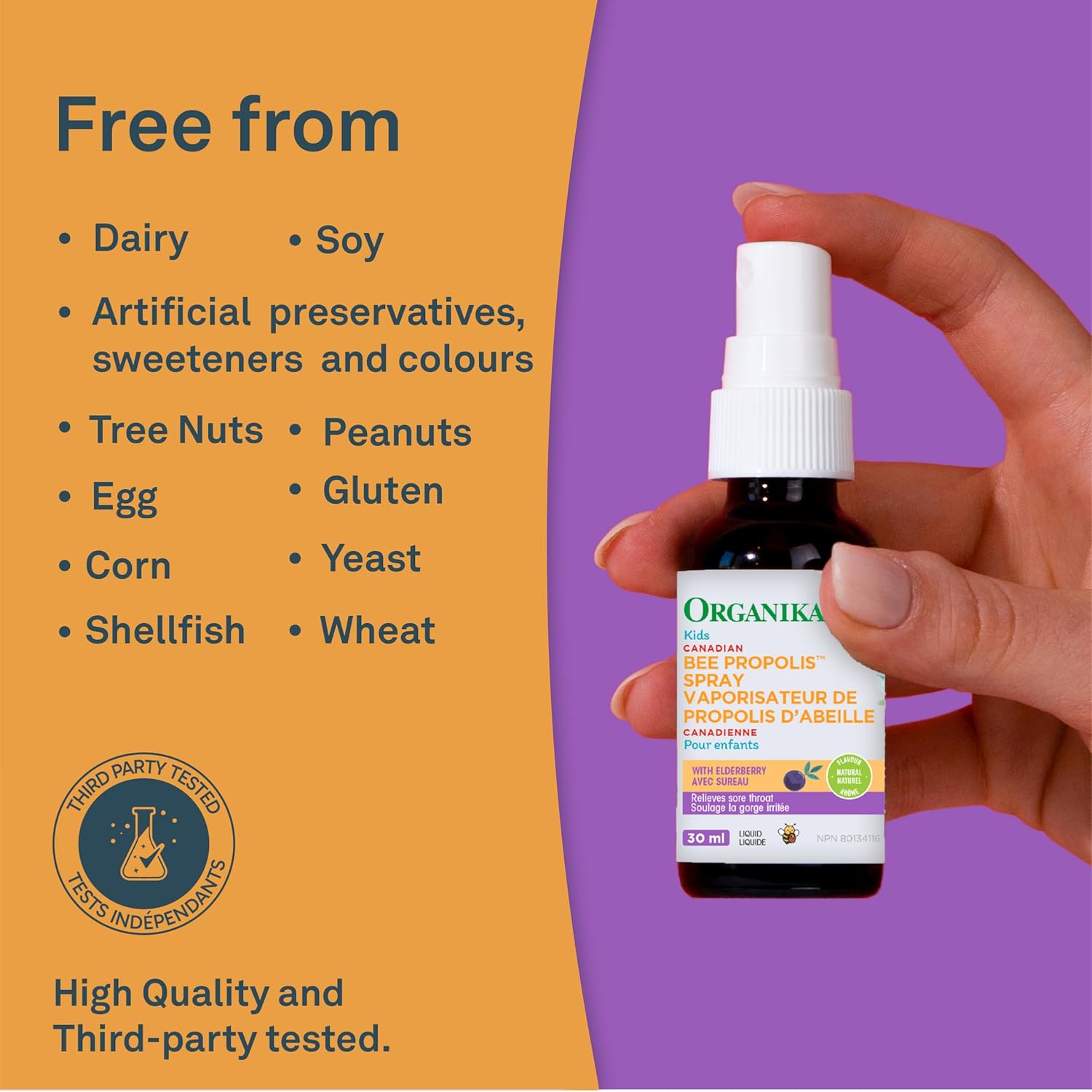 Organika 加拿大制造儿童蜂胶喷雾,含接骨木莓,天然无糖,缓解咽喉痛,增强免疫力,抗氧化 - 30ml