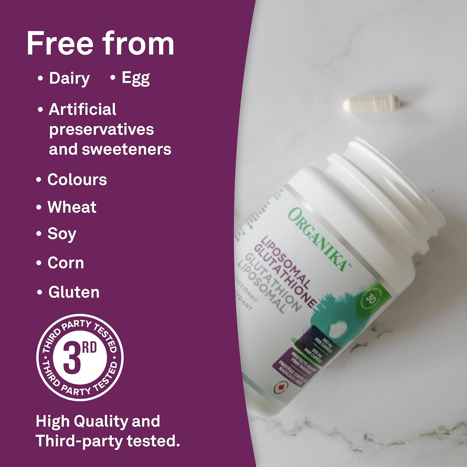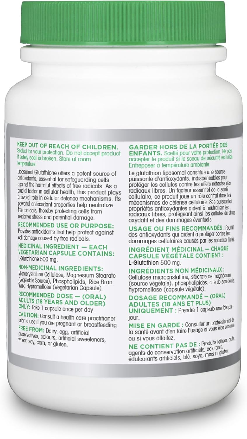 Organika 加拿大制造脂质体 L-谷胱甘肽 500 毫克 - 吸收率高,强效抗氧化,增强免疫力,帮助组织修复,排毒 - 30 粒胶囊,30 天用量