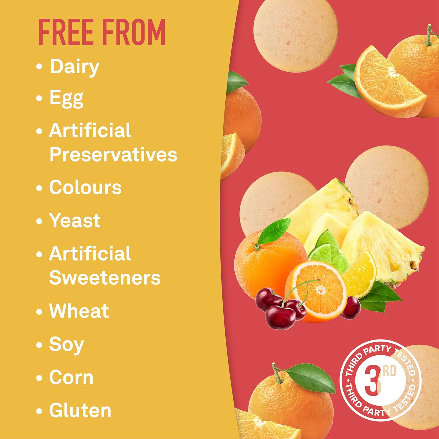 Organika 电解质盐片 - 水果宾治口味咀嚼片 - 快速补水,增强耐力和能量,添加 D-葡萄糖 - 60 片
