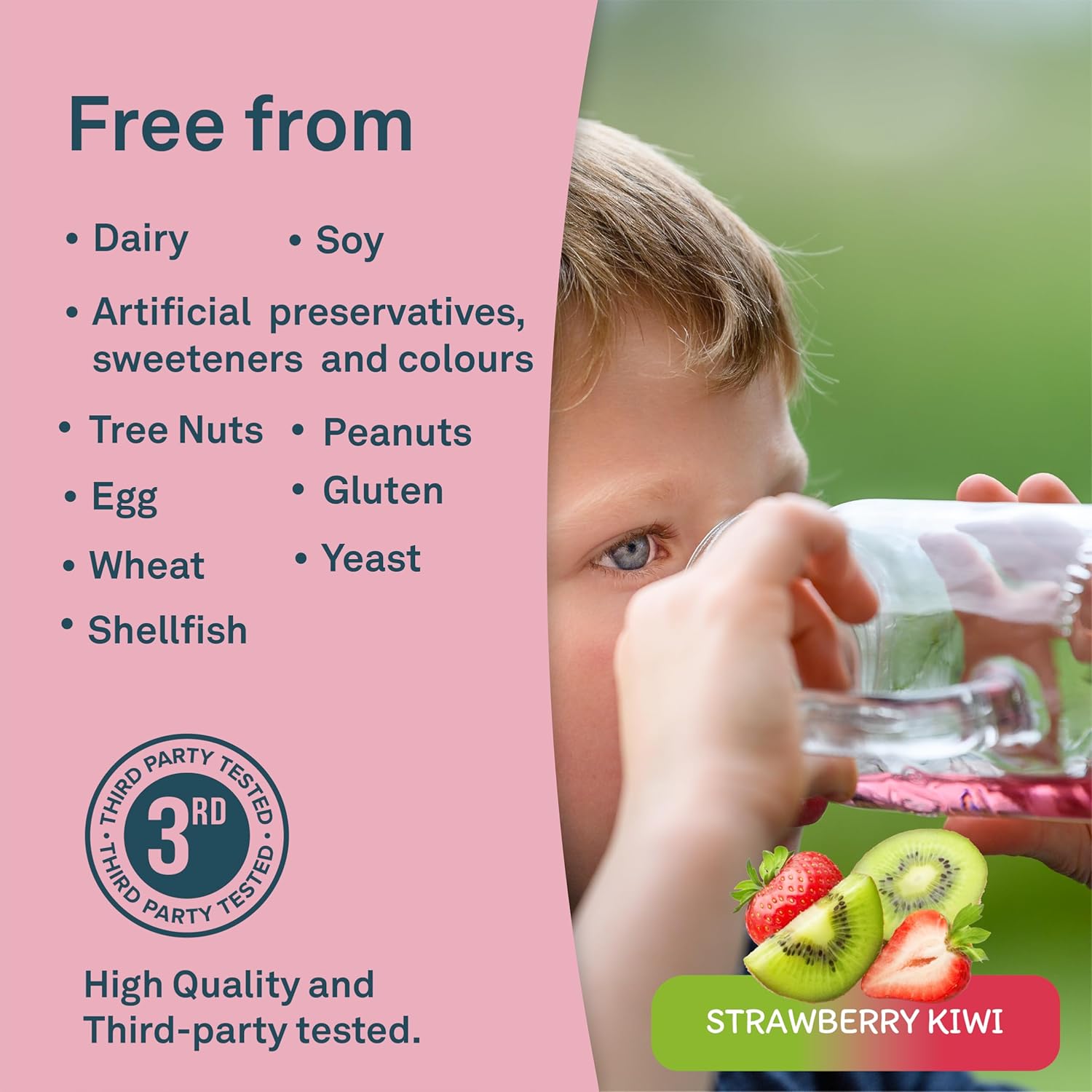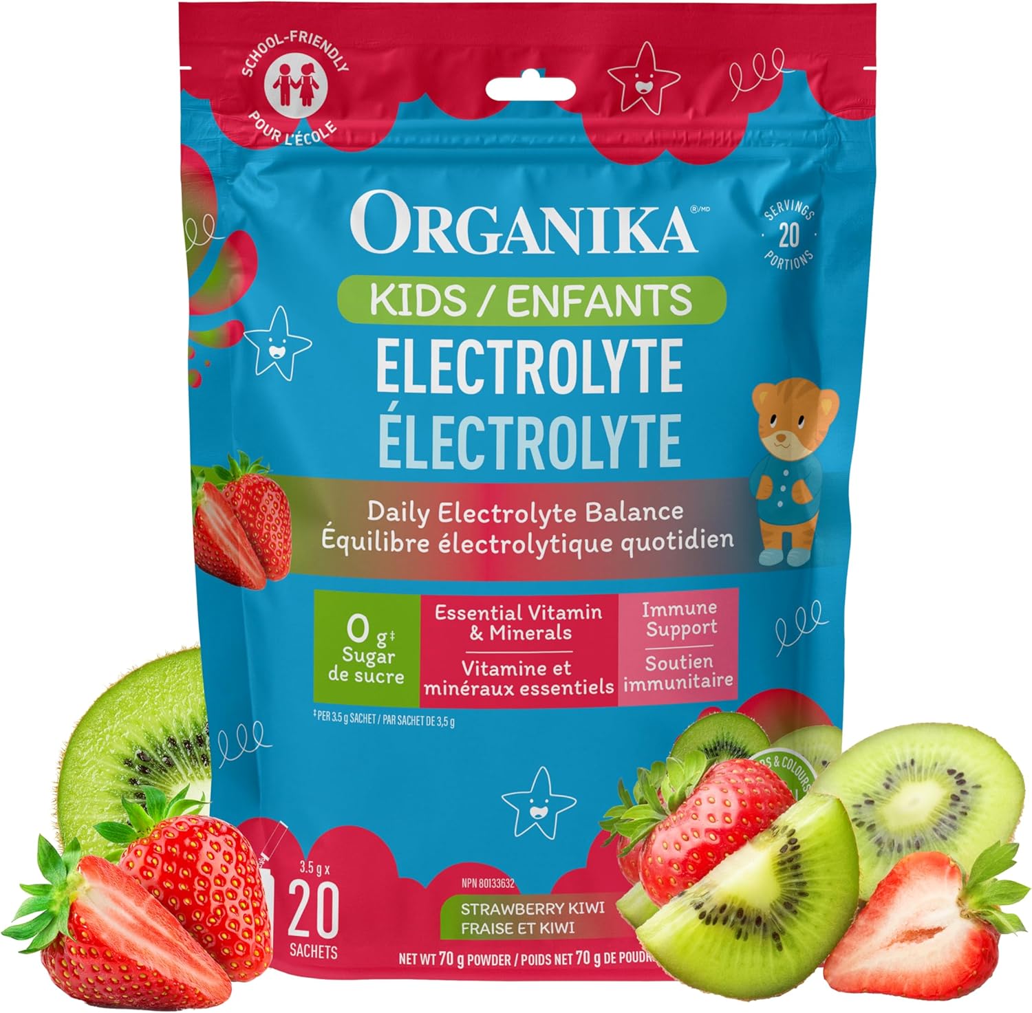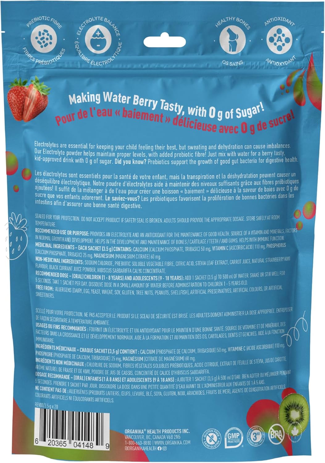 Organika 儿童电解质粉 - 草莓奇异果口味 - 随时随地无糖补水 + 100% 每日所需维生素 C、益生元和抗氧化剂 | 不含乳制品、麸质和 BPA - 3.5 克 x 20 袋
